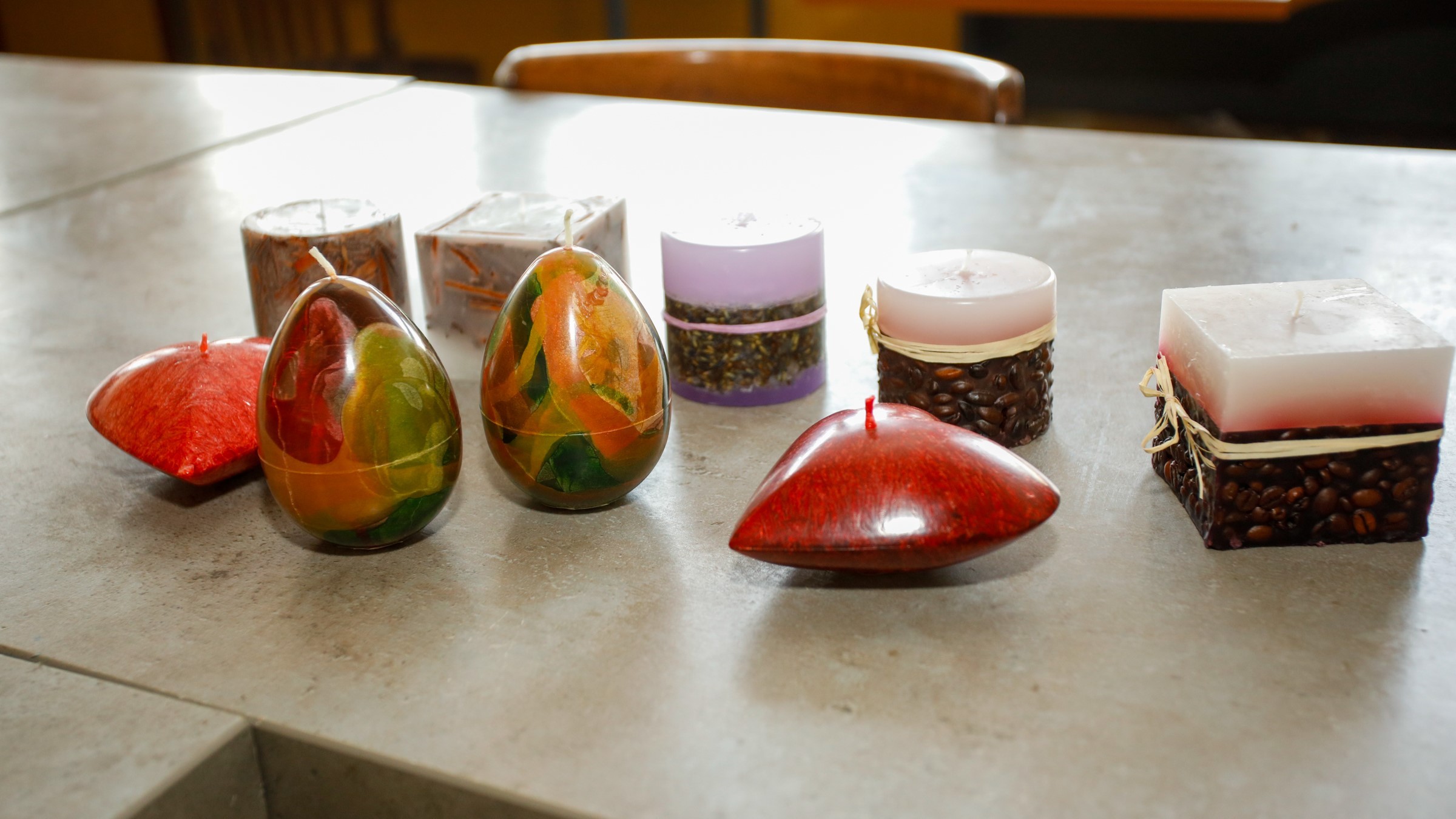 Sviečky, ktoré vyrábajú klienti.