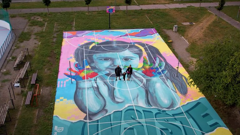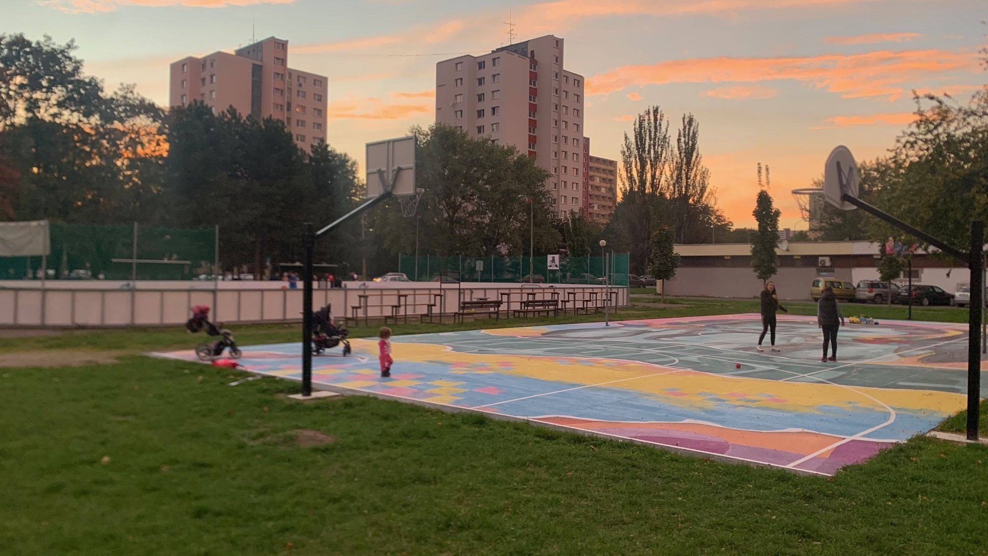 Chalani z WallDesign v spolupráci s Mariom Biharym premenili sivú asfaltovú plochu na žiarivé miesto, kde deti rady trávia čas.