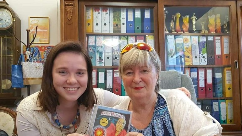 Úvodné foto v článku: Pani zriaďovateľka Mgr. Viera Zavarčíková so študentkou Andreou Pátkovou, CD - víťazný klip „Problémy s problémami - IGRIC 2021, 1.miesto - Animofest 2020