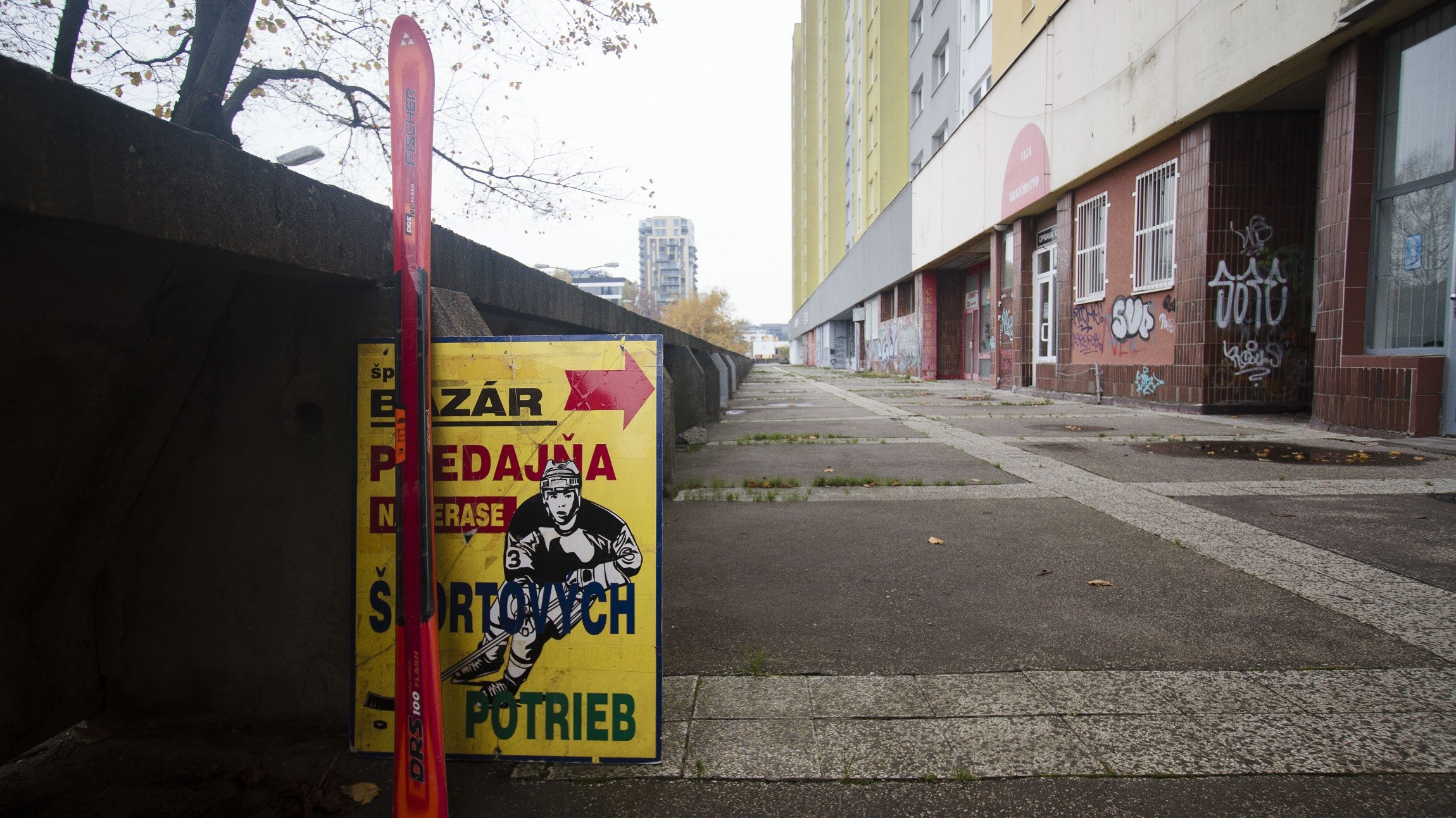 Stojím na zanedbanej terase na Pečnianskej, po ktorej sotva prejde človek. Pozerám na vyblednutý nápis Šport bazár, na zamrežované vstupné dvere a opustený pútač a čudujem sa, že obchodík na tomto mieste vôbec nájde zákazníka. Hovorím to majiteľovi Jurajovi Šulavíkovi. „Keby snežilo, tak by ste videli, koľko ľudí by si tu otváralo dvere!“ zareaguje a vysvetlí, že keď na okolitých kopcoch napadne sneh, ľudia sa k nemu hrnú, pretože nie každý má na nové lyže a chystá sa do Álp.