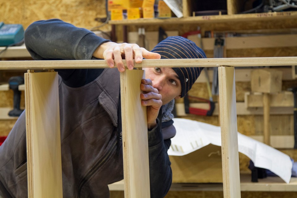 V dielni pracuje päť stolárov. Kým v nábytkárskych dielňach jedna partia nábytok vyrobí, iná zmontuje a ďalšia rieši reklamácie, v Ajnfachu chodia na montáže rovnakí stolári, ktorí ho vyrobili. „Potom nemáme reklamácie,“ konštatuje Ľudo Franta prosto. A to ani nie sú všetci vyučení.