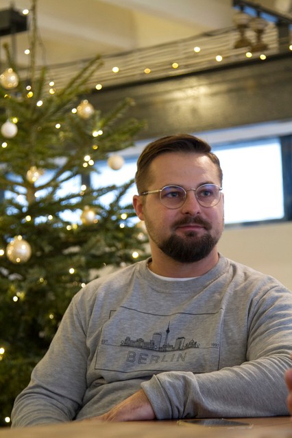 Hovorí, že je programátor a dizajnér a už na strednej škole mal IT firmu na appky a weby. „Vy ste taký hipster,“ pokúsim sa byť trendy. „Ale kde, hipsteri nevedia zarábať peniaze,“ reaguje so smiechom a pokračuje: „Naši klienti postupne chceli, aby sme im vymysleli nielen vizuál na online, ale aj na offline. Keď prerábali firmy, chceli navrhnúť identitu aj pre svoj vnútorný priestor. A tak som hľadal partnera, ktorý je zručnejší vo výrobe než ja. Vyrastal som v coworkingu v obchodnom dome Dunaj, tam som sa stretol s Jakubom Adáskom. Jeho otec kedysi vyrábal filmové kulisy, detstvo strávil medzi stolármi, pri dreve.“