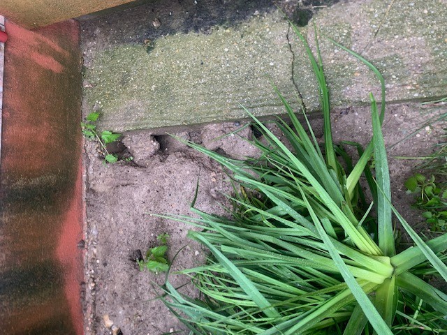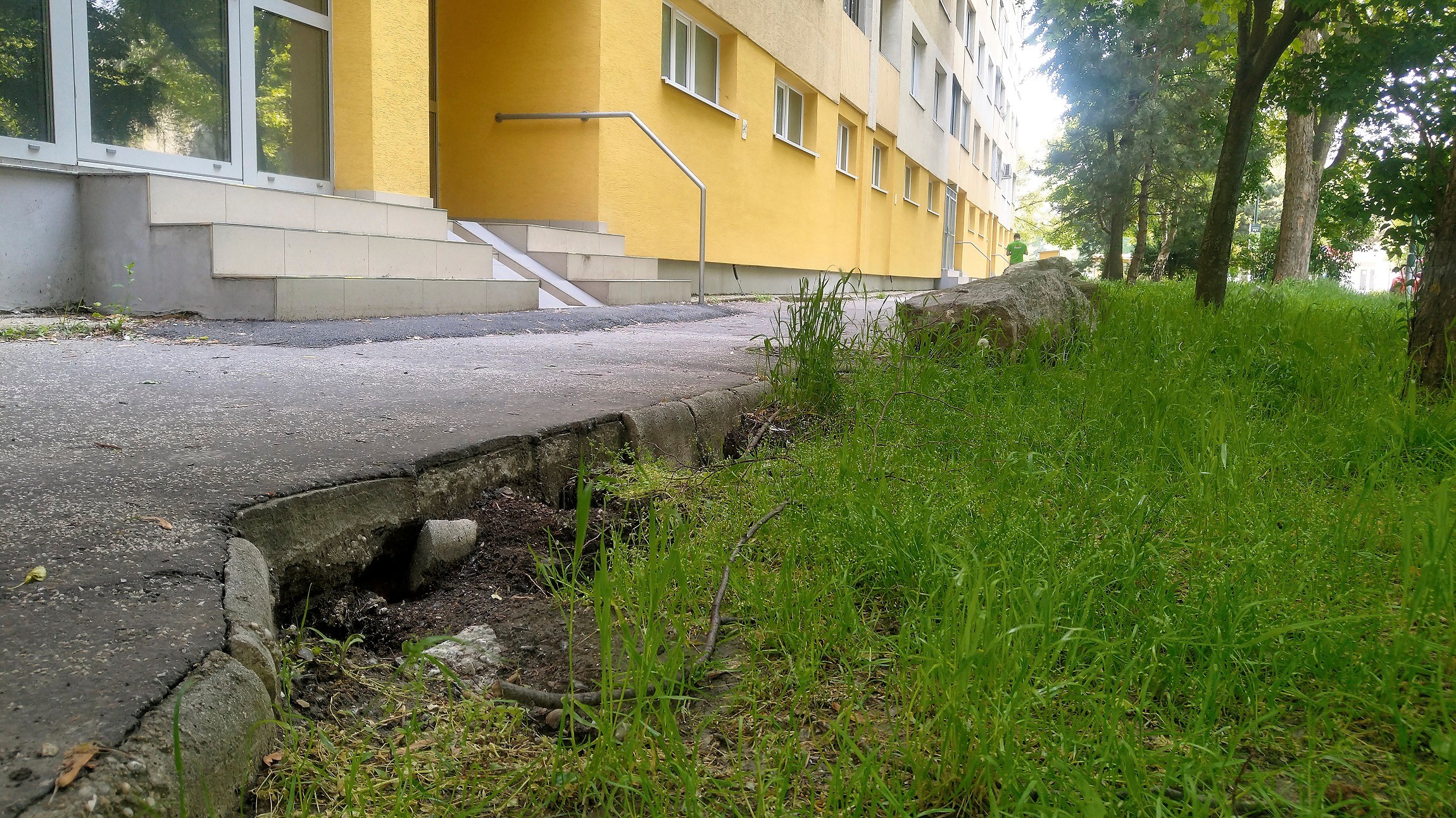 Oslovila nás pani Hana z Farského. Pred vchod prišla s jedenapolmetrovou palicou, ktorú bez problémov strčí do viacerých dier v zemi. Ťažko si predstaviť, aký labyrint chodieb sa skrýva pod predzáhradkou. „Tu bola jama po kolená. Nikto sa tu neodvážil stáť. Báli sme sa, že sa prepadneme, “ ukazuje mi priestor pri prístupovom chodníku ku kaderníctvu. Ten sa tiež prepadol. „Vybrali sme dlaždice, doplnili zeminu a nanovo ich osadili. Upchávanie dier, hoci aj kameňmi je však úplne zbytočné,“ konštatuje.