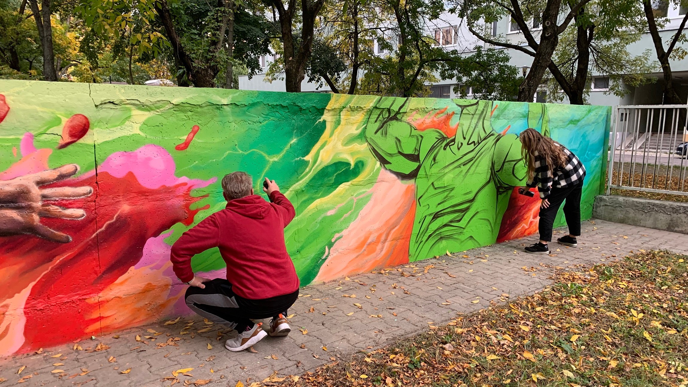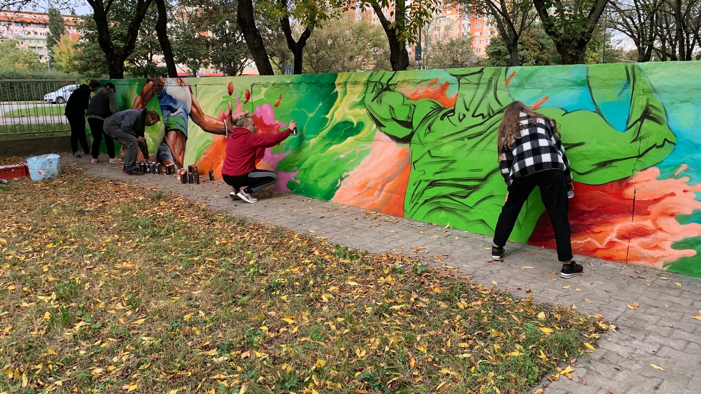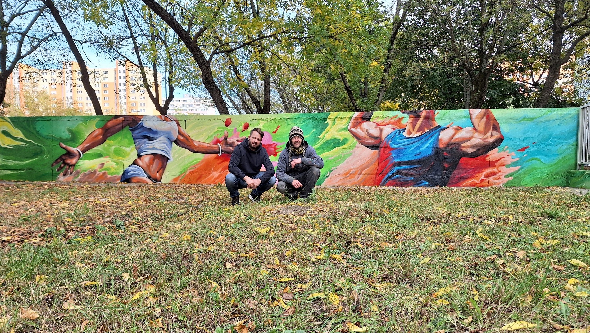 „Už dávnejšie sme chceli tento priestor vymaľovať, nakoniec sa nám to podarilo vďaka finančnému grantu i šťastnej náhode. Natrafili sme totiž na talentovaného umelca Martina Kremeňa, ktorý je autorom návrhu, a dobrovoľníkov z okolia, ktorí sa na realizácii tiež zúčastnili,“ prezradil aktivista Martin Čambalík z občianskeho združenia Poďme na to. Martin Kremeň má za sebou desiatky malieb vo verejných i súkromných priestoroch. S výsledkom na petržalskom ihrisku bol spokojný.