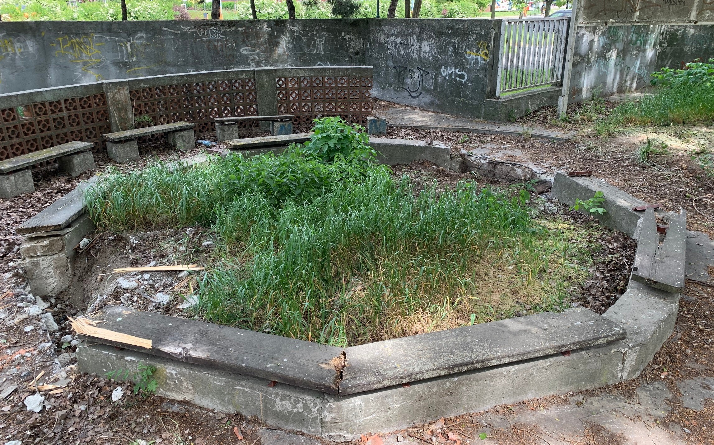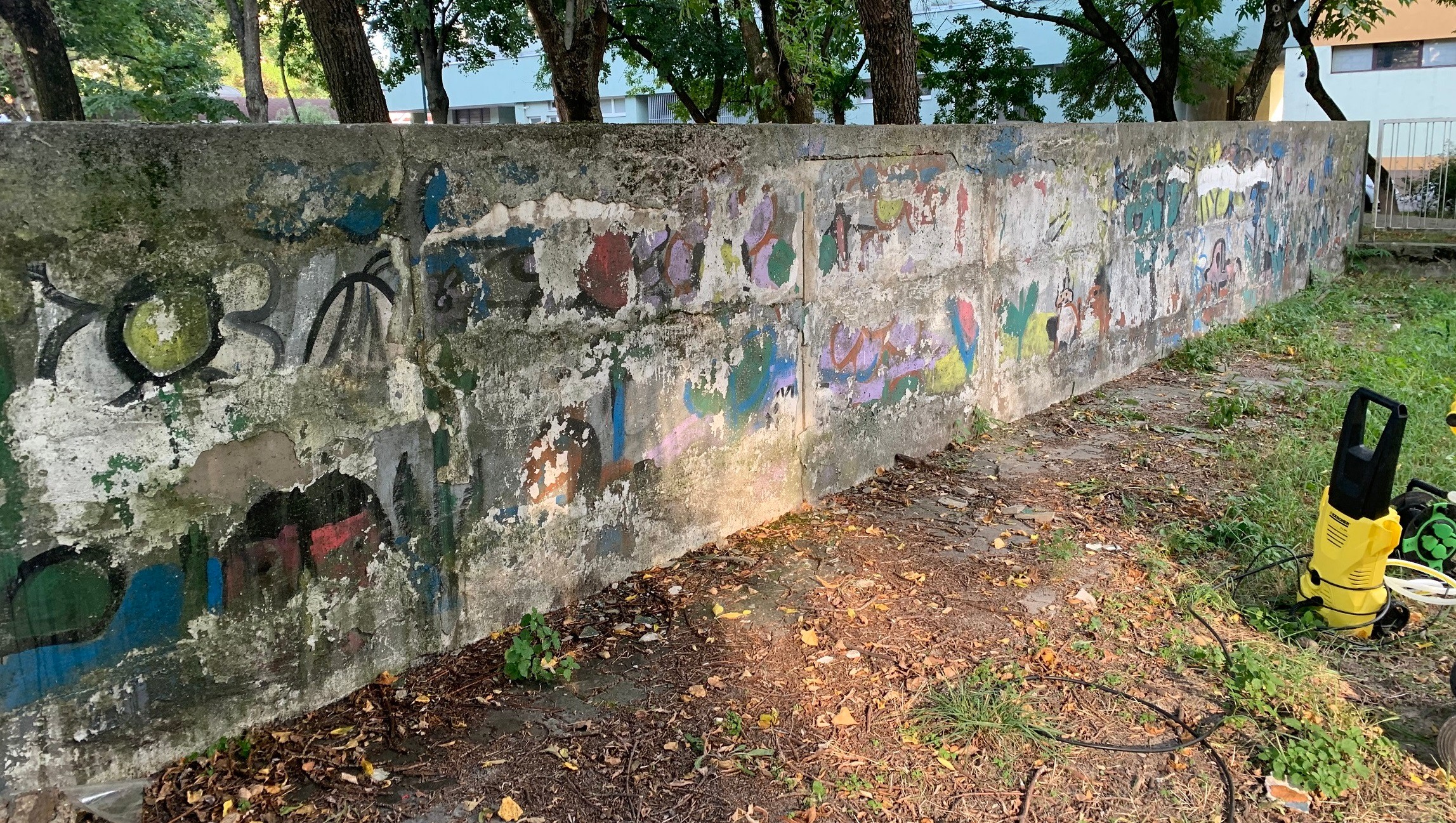 Takto vyzeral pred úpravu ošarpaný múr ihriska.