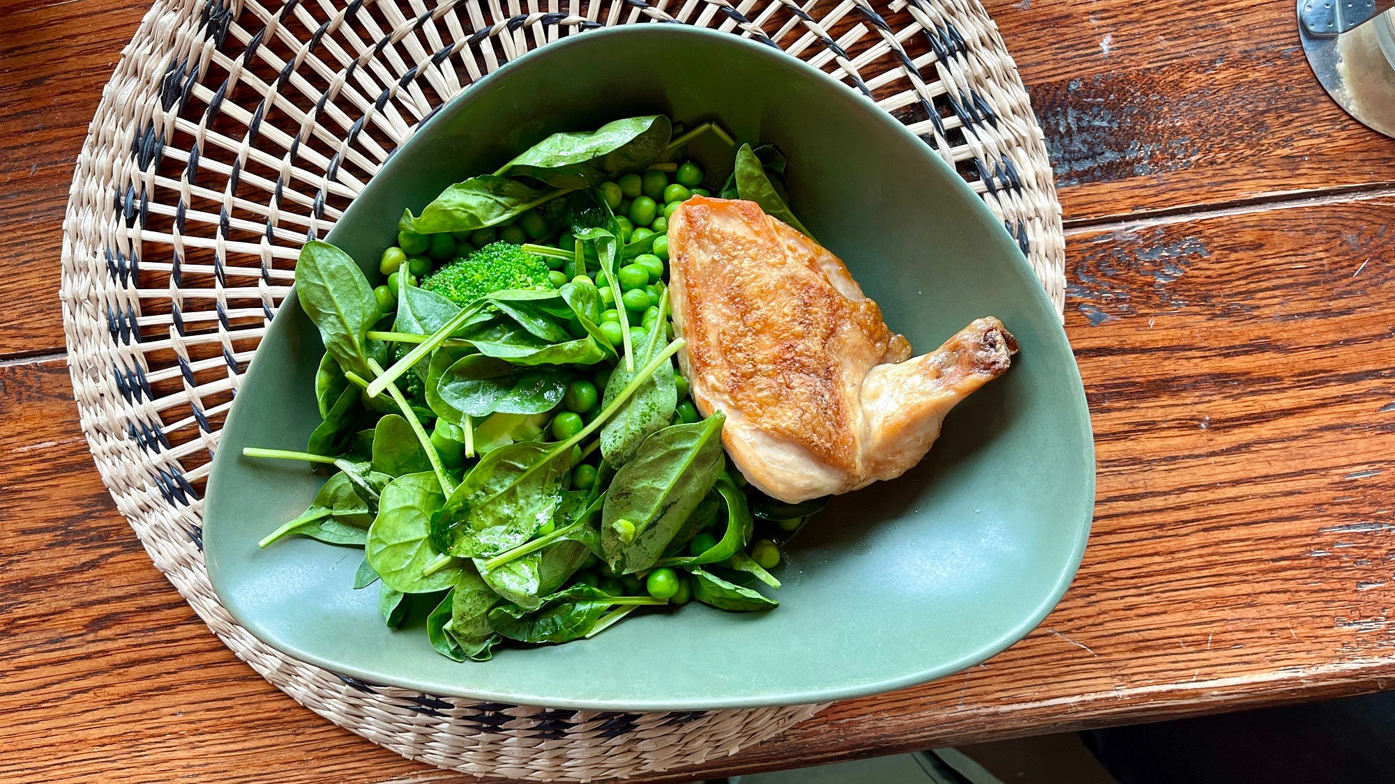 Naopak, Kuracie supreme na grile (11,90 €) bolo menším sklamaním. Mäso bolo síce jemné, dobre prepečené, ale chuťovo málo výrazné, ničím neprekvapila ani zelenina na masle – hrášok, listový špenát a ružičky brokolice. Navyše sme si ešte objednali miešaný šalát z čerstvej zeleniny a s citrusovým dresingom (4,10 €), ten už bol zaujímavejší.