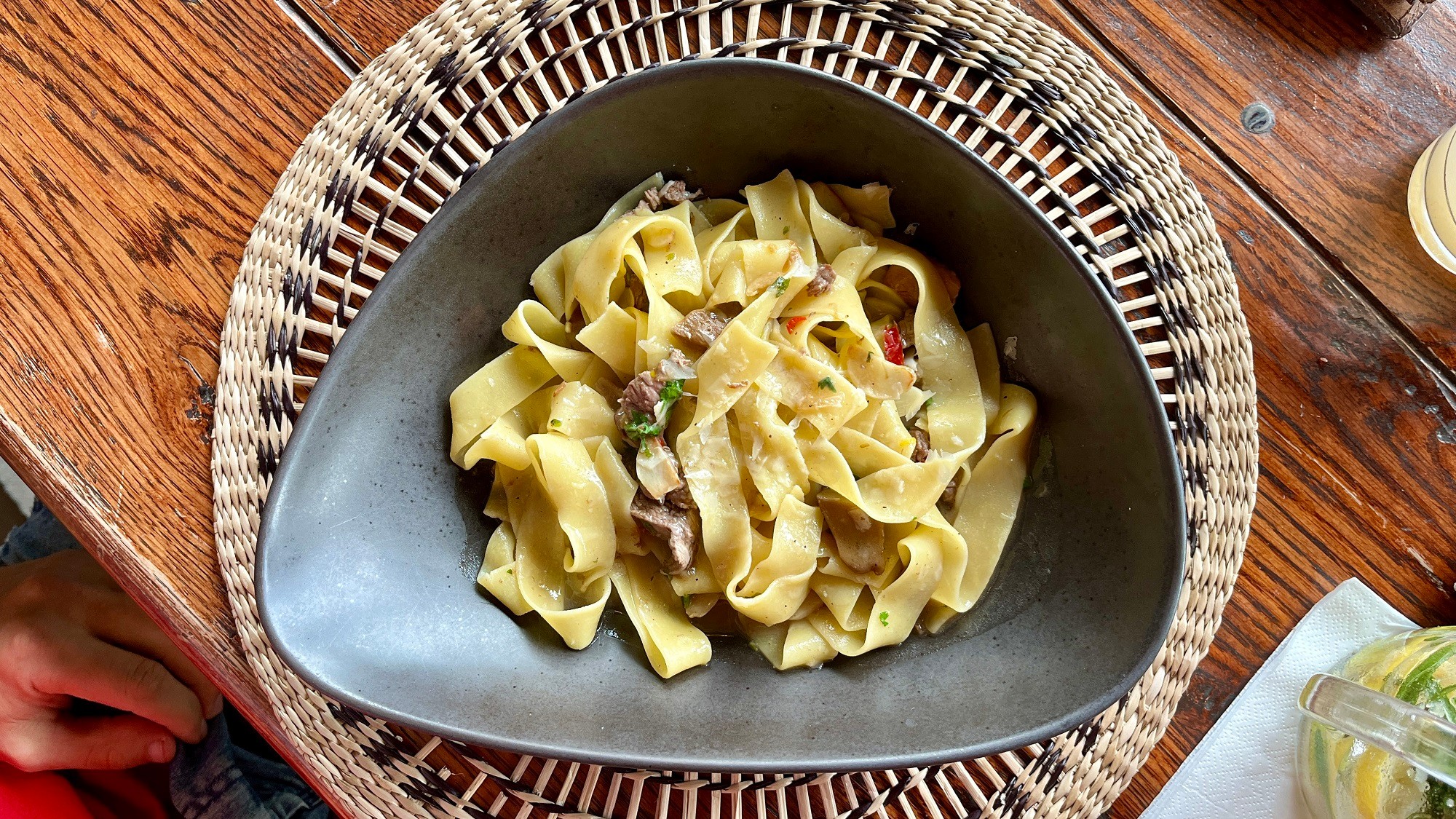 Keďže široké talianske cestoviny papardelle máme veľmi radi, vyskúšali sme aj tie, a to vo verzii Pappardelle s hovädzou sviečkovicou (19,90 €). Pripravili nám ich dobre, podľa chuti môžeme potvrdiť, že boli naozaj domáce. Mäskom ich síce len zľahka „postrašili“, zato lesných húb nám dopriali požehnane. Kuchár nešetril ani čili, ich pálivosť prebila úplne všetky ingrediencie, až na cesnak. Čili máme radi, takže ostrá chuť jedla nám neprekážala, ale slabšie povahy by takúto výzvu asi ťažšie rozdýchavali.