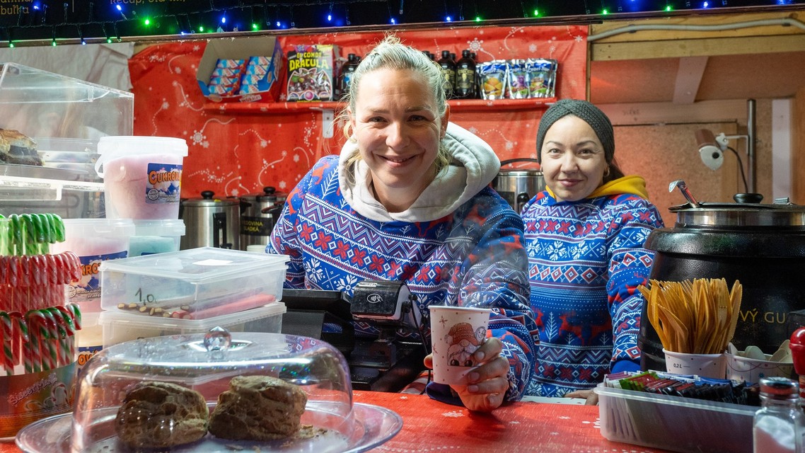 Gabika, ktorá si kvôli trhom berie v robote pravidelne dovolenku, predáva vo vianočnom stánku už pätnásty rok. V Petržalke však po prvý raz. A pochvaľuje si. Na rozdiel od mestských trhov môže v stánku predávať naraz aj nápoje aj lokše a štrúdle. „V meste bolo navyše striktne dané, odkedy dokedy musíte byť otvorení, v Petržalke môžete otvoriť aj neskôr,“ hovorí a neprekážajú jej ani nižšie tržby. „Nie je všetko o peniazoch. Tu je pokoj, pohoda, dokonca, aj keď je námestie plné, menej stresu a väčšinou obsluhujem miestnych.“