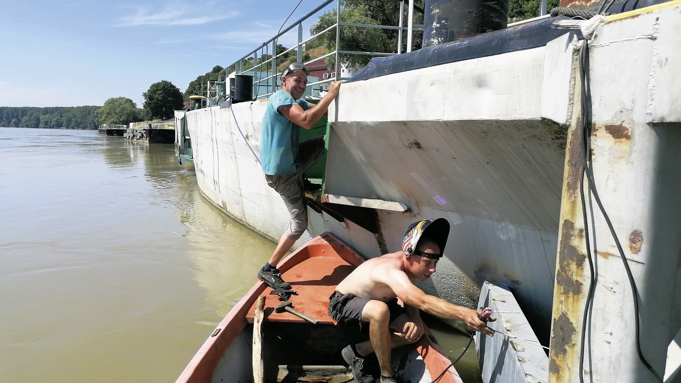 „Spravili ste si aspoň jeden hausbót pre seba?“ vraciam sa na začiatok. Začne sa smiať. „Nie a veľmi som ho chcel mať. Ale nebanujem, lebo keď vám ukážem môj dom, pochopíte. Ja som si urobil hausbót doma. Rovno pod oknami mám stokubíkové jazierko a mám aj okná, ktorými pozerám, čo sa deje pod vodou, ako v ponorke,“ zareaguje a opäť sa pustí do nadšeného rozprávania. Téma vody a lodí je jeho srdcovka, ktorá roky pretrvala. Nielen v pracovnej rovine. „S „rodnou“ Dunajplavbou mám dobré vzťahy, riaditeľ ma volá na všetko, čo nestíhajú alebo nechcú robiť,“ hovorí. Opravujú mnohé havárie veľkých lodí pri pontónoch na Dunaji, aj samotné pontóny, keď treba. „Paľo z lodenice ti to opraví,“ odkazujú si vraj jeho známi medzi sebou.