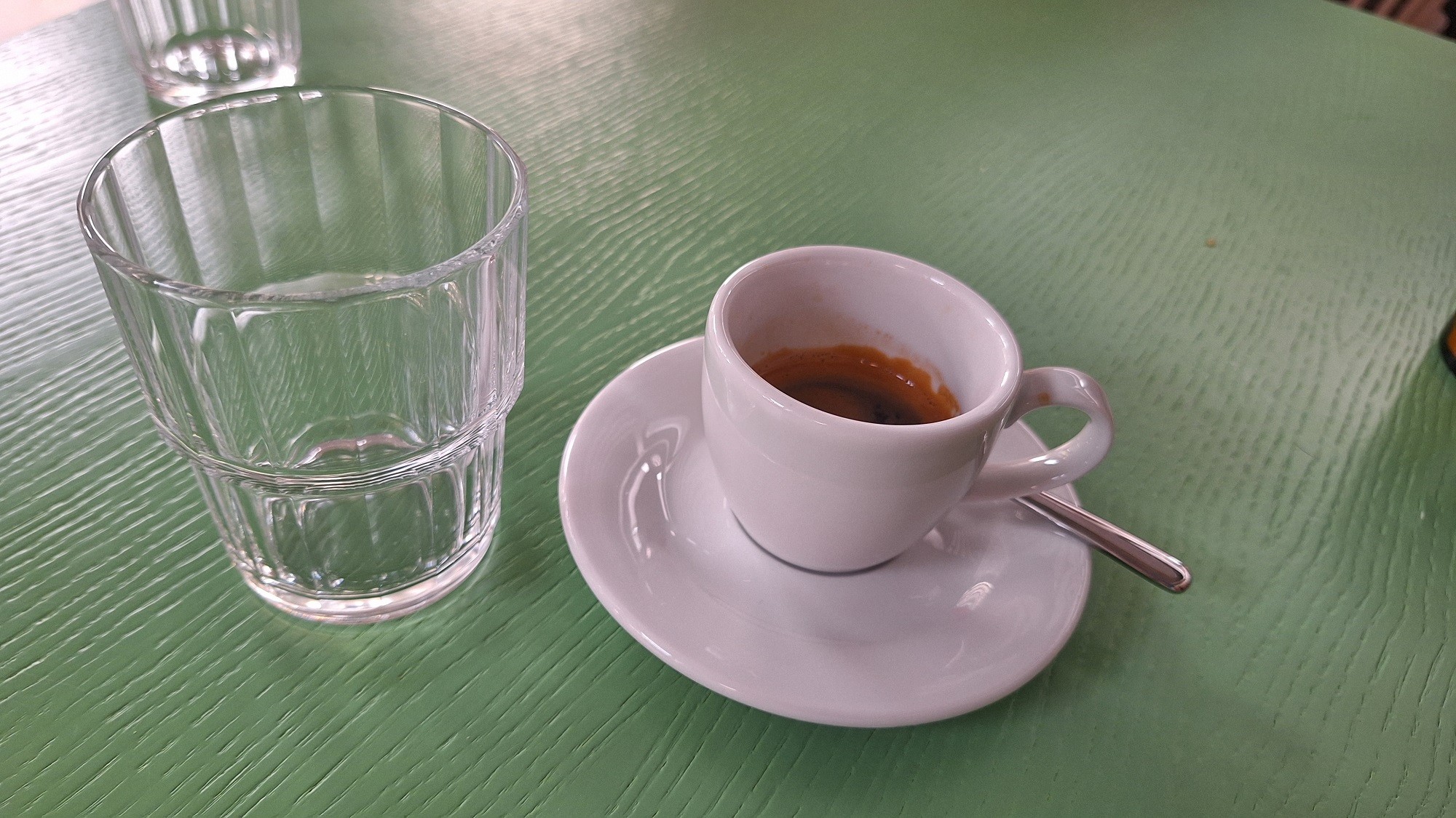Naše „eurové“ espreso v objeme 20 ml bolo jednoznačne z kvalitných kávových zŕn s bohatou chuťou a intenzívnou vôňou. Jediná výhrada: kým všetky jedlá sme mali na stole do približne 20 minút, na kávu sme čakali vyše polhodiny. Obsluhujúce dievčatá boli milé a ústretové, ale v tie prvé dni po otvorení bistra sa zjavne potrebovali zladiť.