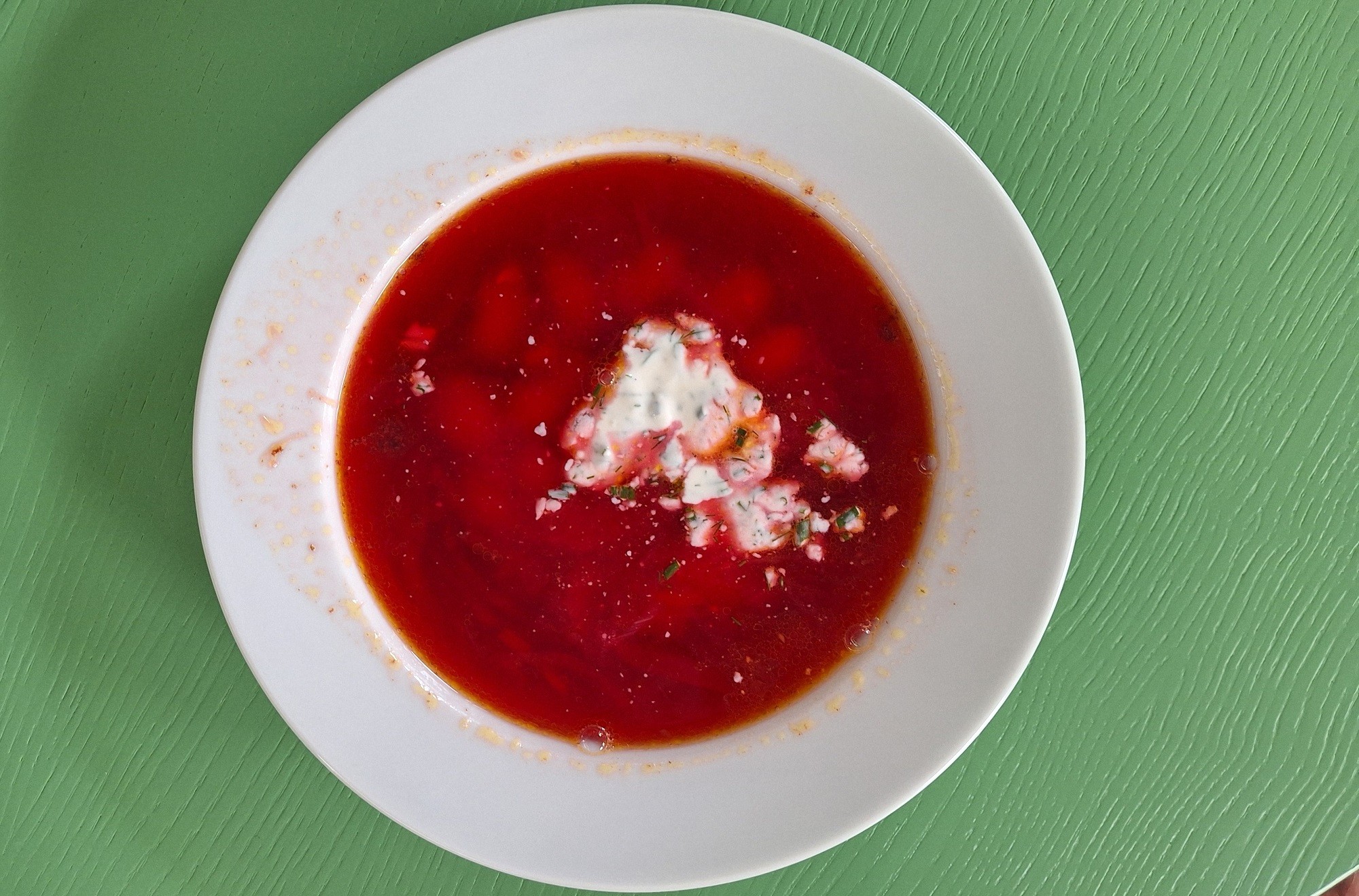 Na ďalší deň bol v ponuke vegetariánsky Boršč, v ktorom mäso zastúpili veľké fazule a nebolo to zlé. Aj túto polievku pripravili redšiu, pár slížikov cvikle a mrkvy, kapustu sme hľadali márne, ale chuťovo sa jej nedalo nič vyčítať a konzistencia nám v tých horúčavách úplne vyhovovala.