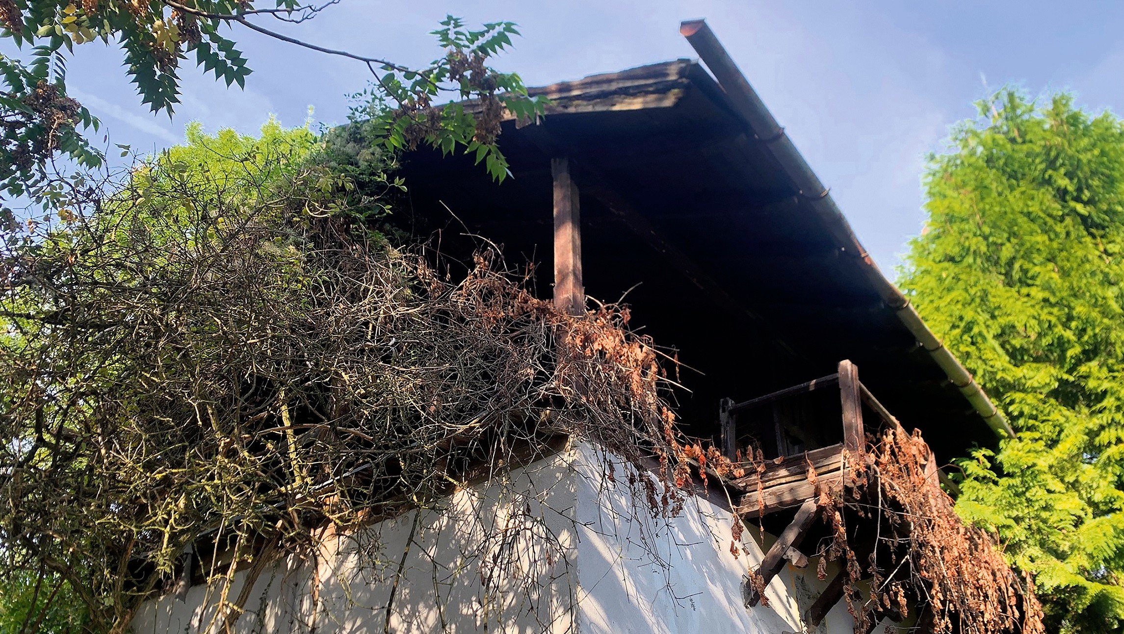 Jagdhaus zo zadnej strany. Odtiaľto vidno, v akom je zlom stave.