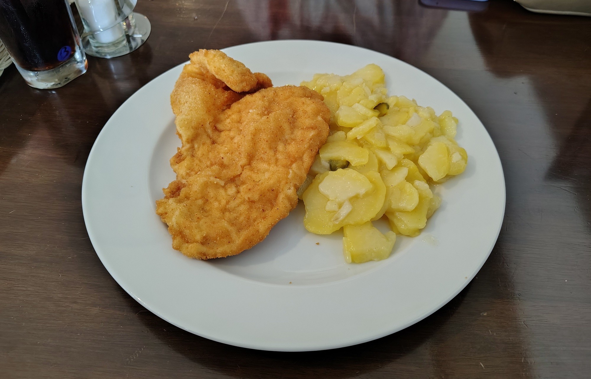 Takisto Rezeň so slovenským šalátom bol v menu od pondelka do piatka, zjavne aj tu stavili na istotu a na to, čo vedia robiť. Vybrali sme si kurací rezeň (druhou možnosťou bol bravčový) a bola to dobrá voľba. Chutil skvele, mäsko bolo mäkké a šťavnaté, trojobal chrumkavý a ľahký. Najviac však vyzdvihujeme zemiakový šalát, bol svieži a len jemne kyselkavý. S cibuľou to zbytočne neprehnali, navyše nás v ňom potešili krúžky kyslej uhorky, ktoré doplnili chuť prílohy, pre nás dokonalú.