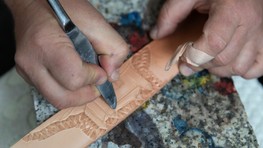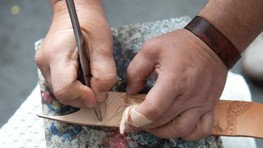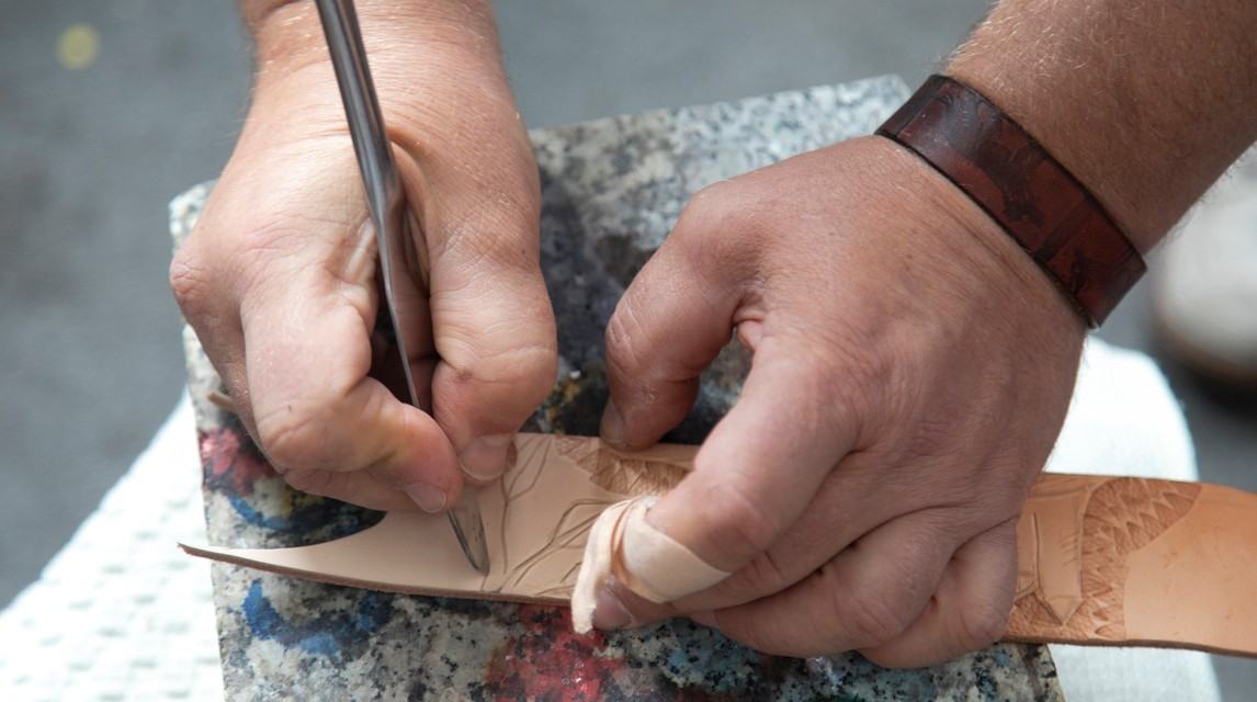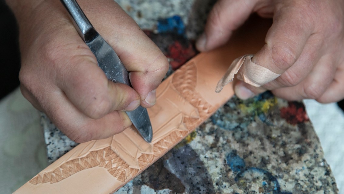 Ukazuje nám, ako vyrába 3D efekt na svojich originálnych opaskoch, ako vzniká reliéf, aké vlastné prírodné motívy kreslí na kožu... Niektoré jeho ručne robené remene majú aj ručne kované pracky. Po prvý raz počujem výraz ako ´švihlá´ – narezané tenké pásy kože, ktoré vraj idú na dračku, lebo nikomu sa ich už nechce narezávať. Marek na svoju kožu nedá dopustiť. Vraj je najlepšia v stredoeurópskom regióne. „Z Moravy, prírodné spracovaná, žiadne chemikálie, činená trieslom,“ hovorí a zas mi rozšíri slovník.