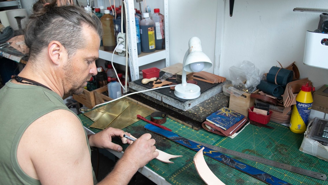 Jeho dielňu by ste v Petržalke hľadali len ťažko. Je ukrytá na Panónskej ceste, kúsok od známeho železiarstva, kde dnes fungujú najmä sklady či pneuservisy. Človek by tam bez problémov zablúdil. „Zákazníci sem však za mnou nechodia. Stretávajú ma skôr na trhoch alebo jarmokoch,“ vysvetľuje Marek Zaszlos a vedie nás do útrob niekdajších dielní. Otvorí pred nami malú miestnosť, ktorej dominujú kotúče kože a potom koža vo všetkých možných podobách. Na väčšinu arfefaktov, ktoré tu objavím, ani nemám výraz, takže moja najčastejšia otázka znie: A toto je čo?