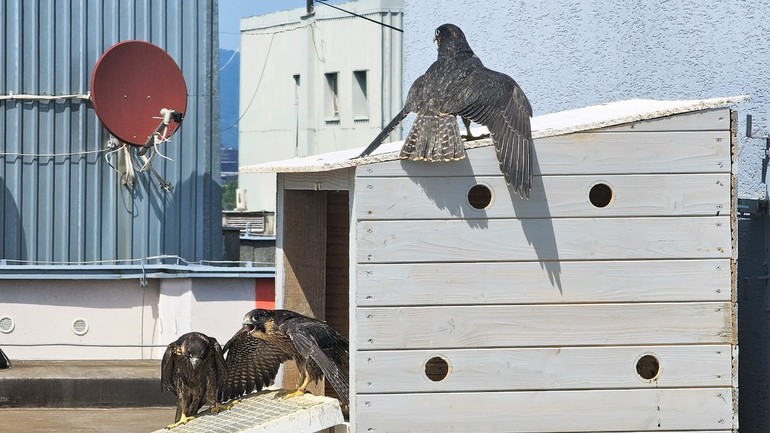 „Sokol sťahovavý uloví denne jedného až dvoch holubov, záleží od hladu,“ hovorí sokoliar Ján Šenkýrik z OZ Falcon Wings. S kolegom Petrom Ondrejmiškom nedávno nainštalovali na bytovky na Andrusovovej a Krásnohorskej špeciálne hniezda pre týchto dravcov.
