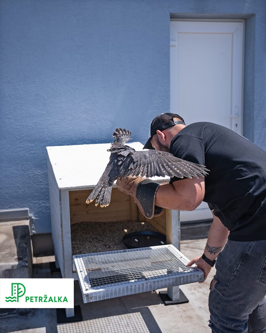 V prvom rade je podstatné povedať, že petržalské sokoly neboli na strechu paneláku premiestnené z voľnej prírody. „Sú to umelo odchované jedince, ktoré sa postupne stanú voľne žijúcimi,“ vysvetľuje Ján Šenkýrik s tým, že cieľom projektu je do desiatich rokov vybudovať v mestských častiach umelú populáciu tohto druhu. Pýtam sa ho, či sokoly zvládnu život na sídlisku. Reaguje, že sokolom sťahovavým pohľad na paneláky neprekáža. Už dnes jedince tohto druhu môžete zbadať oddychovať napríklad na budove Incheby. V prírode obývajú skalné oblasti, paneláky im ich pokojne môžu evokovať. Nestavajú si vlastné hniezda, ale využívajú opustené. Na streche bytovky im stačí búdka a plošinka so štrkom.