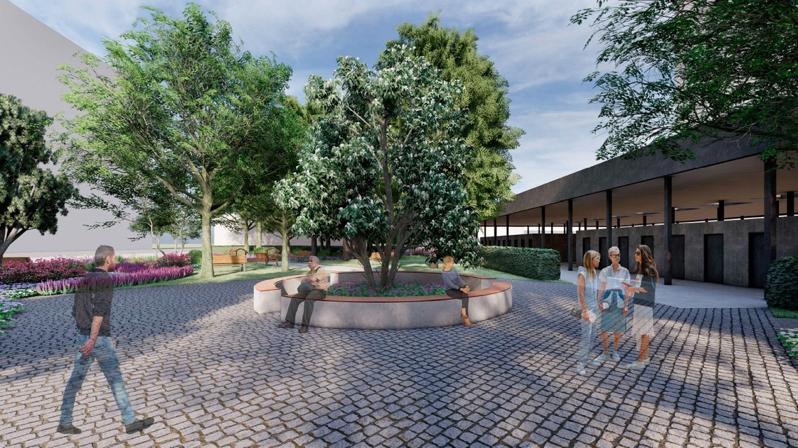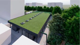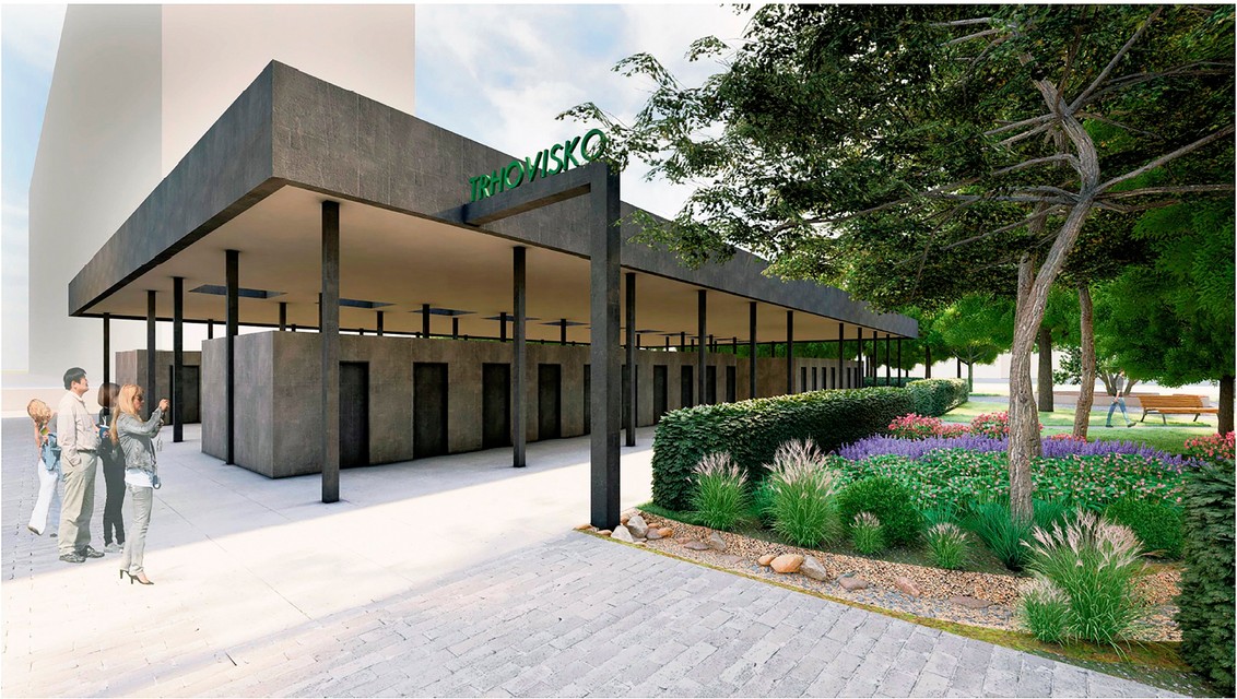 „Nad celým trhoviskom je navrhnutá stálozelená vrstva bezúdržbovej zelene ako zelená strecha, ktorá v letných mesiacoch zabezpečuje príjemnú klímu pre všetkých predávajúcich a kupujúcich,“ citujeme štúdiu.