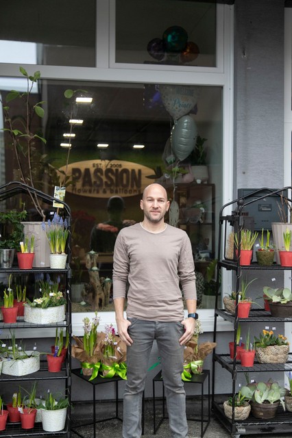 Priznáva, že dlho kvetinárkam „len pozeral na ruky“. Učil sa tak, že odkukával, lebo ľudia sa vraj o svoje know-how len neradi delili. „Bol som samouk, ale veľmi som chcel. Takže som vystriedal niekoľko kvetinárstiev a pochopil, že pravidlá aranžovania, ktoré moje kolegyne naučili v škole, sú občas zväzujúce a najmä málo platné, ak máte kvety len ako prácu a nie ako vášeň.“ V roku 2005, keď mal 25, si povedal, že si dá k narodeninám darček. A tak vznikla firma Passion. „Začal som fungovať na objednávky. Býval som s rodičmi na Farského, dole v dome som si prenajal priestor a začal ho používať ako ateliér. Neudržiavaný priestor pred ním som premenil na malú záhradku s jazierkom a koi kaprami. Mamičky s deťmi sa k nemu chodili fotiť,“ spomína. „Viete, fascinoval ma jeden z návrhov súťaže pred začatím výstavby v Petržalke, ktorý ju predstavil ako sieť vodných kanálov a jazier uprostred sídliska. Bohužiaľ, sa nezrealizoval, tak som si povedal, že spravím aspoň jedno.“