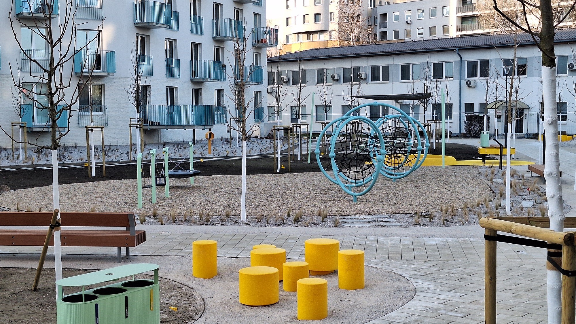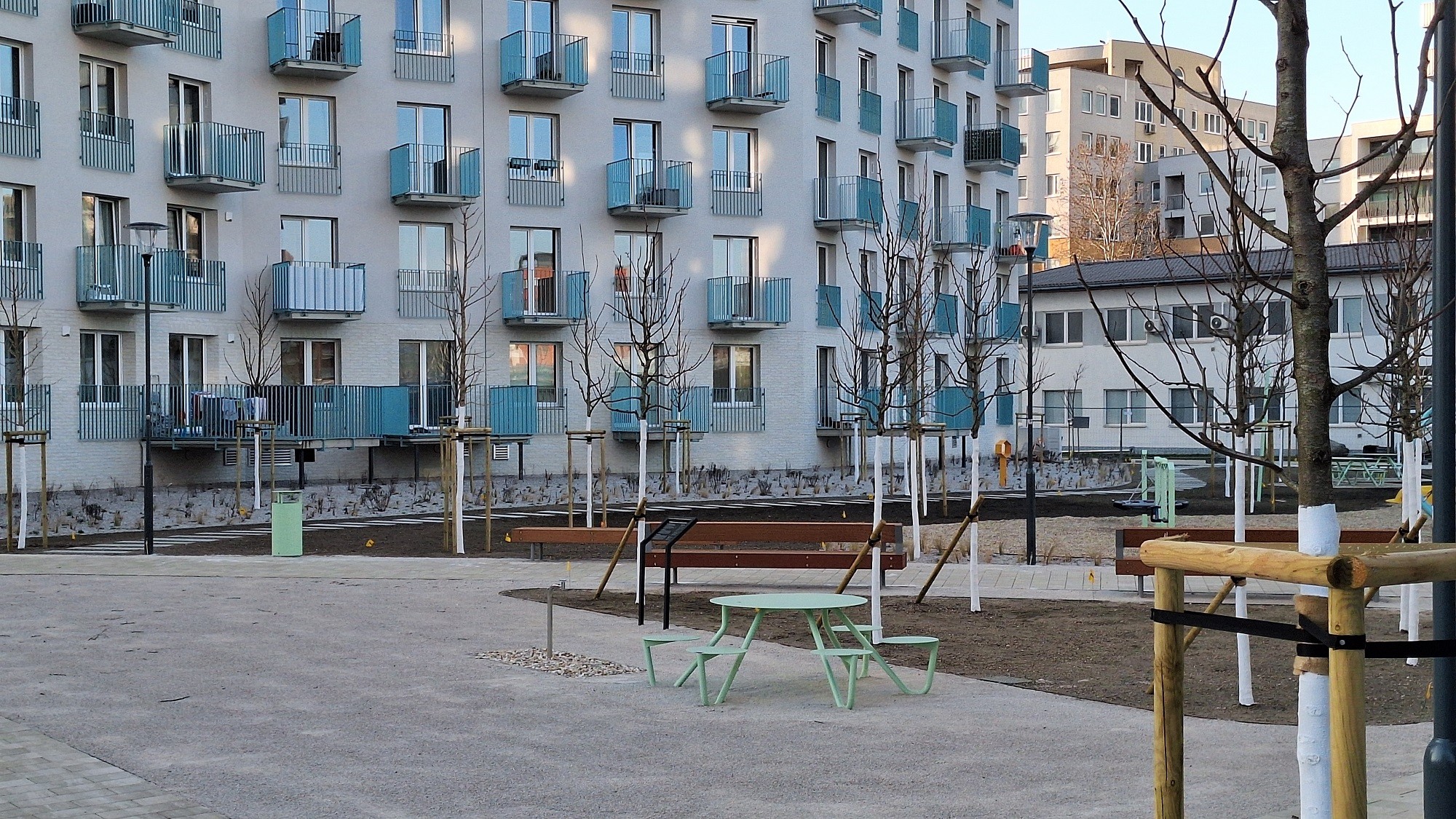 V marci 2026 sa už stavenisko vo vnútrobloku zmenilo na príjemné oddychové miesto.