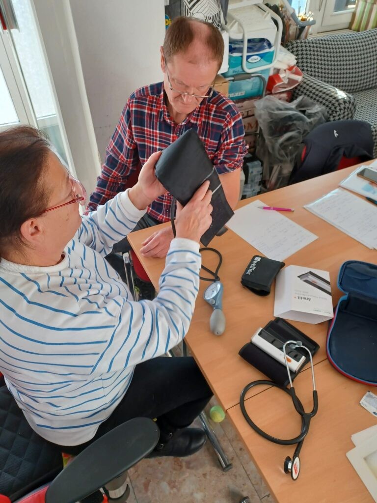 Odvtedy sa veľa zmenilo. Pomôcky už nie sú z Rakúska, ale z dotácií, niekedy ich prinesú aj ľudia, ktorí ich už nepotrebujú. A požičovňa združenia je oficiálne registrovaná ako sociálna služba. Pomôcky naďalej požičiava bezplatne, žiada len symbolickú vratnú kauciu. „Ľudia ju obyčajne ani nechcú späť. Tie peniaze mám zase na to, aby sme ich vydezinfikovali a opravili.“ Pôžičky bývajú aj krátkodobé. Vozík, keď si niekto zlomí nohu, alebo keď s blízkym potrebujú zvládnuť napríklad pohreb. Niektorí si požičajú pomôcku na skúšku, skôr než oslovia poisťovňu, aby zistili, či ju ich príbuzný vôbec bude akceptovať. „Podobne rozdávajú aj inkontinenčný materiál spolu s radami, ako blízkeho presvedčiť, že mu uľahčia život.“