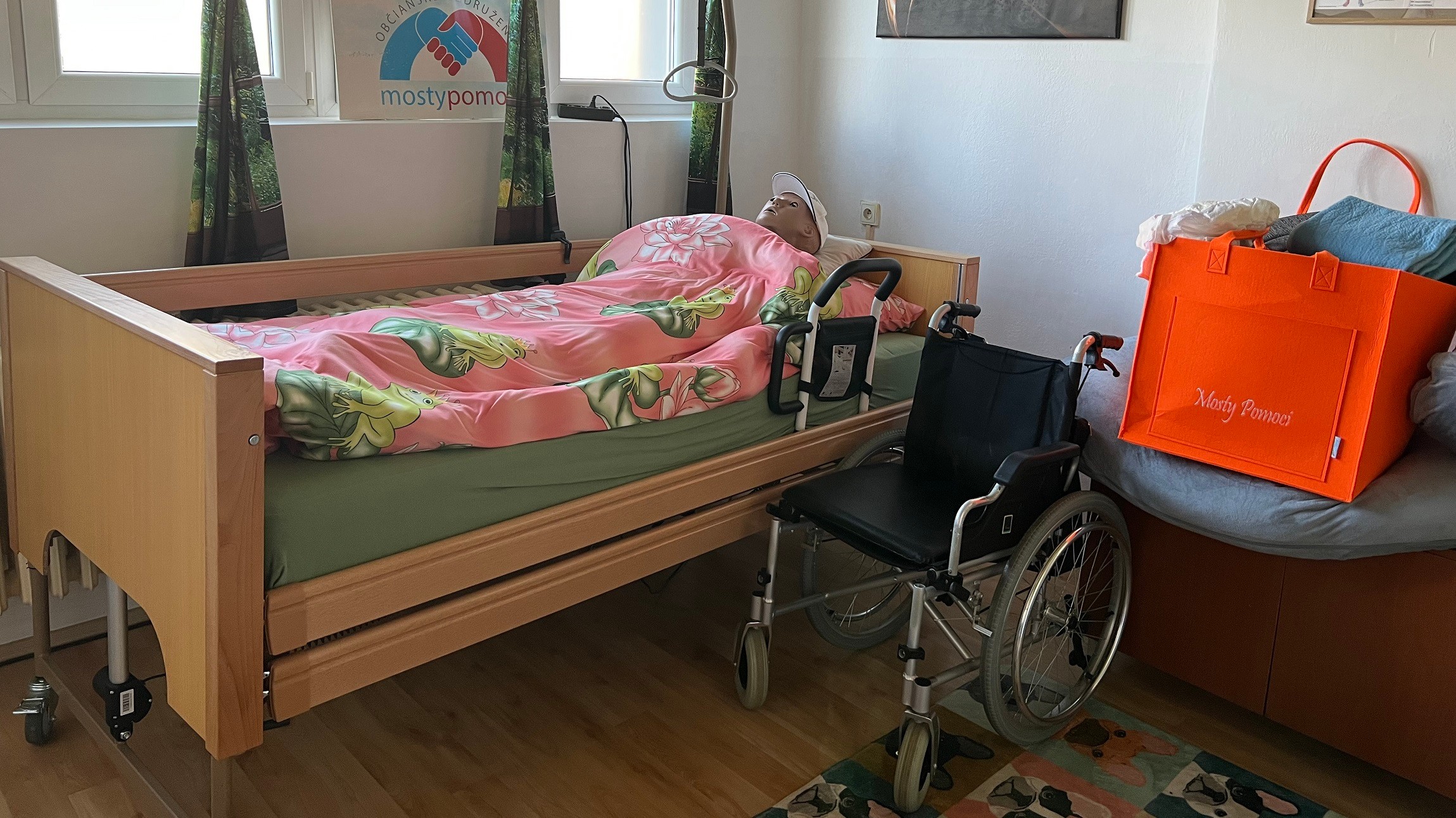 Jaroslav Servátka mi práve ukazuje sklad s pomôckami - WC kreslo, zdvihák do vane, chodidlá, barle, podložné misy, vyvyšovač toalety... Netušila som, aké možnosti už dnes existujú... a vtedy začne Conor štekať. „Šteká na Dextera,“ reaguje s úsmevom pán Servátka a vedie ma do miestnosti, v ktorej na posteli leží... Dexter. „Toto je praktická učebňa a Dexter je naša cvičná ošetrovateľská figurína. Tu opatrovateľov učím, ako zdvíhať príbuzného, ako ho prebaľovať, ako umývať...“