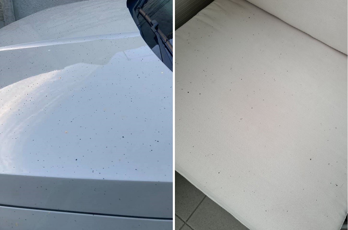 "My sme mali ten čierny poprašok úplne na všetkom - na tráve, chodníku, aute, vonkajšom sedenie, skrátka všade to bolo," napísala do skupiny Bianka. Do diskusie sa následne zapojilo viacero ľudí žijúcich v Podunajských Biskupiciach a napríklad pán Ivan jej slová potvrdil: "Máme bieleho psa a pri venčení sčernel. Takisto kvety na oknách majú také malé čierne bodky akoby zo sadze." Martina napísala, že si čierne bodky všimla po návrate z prechádzky na kočíku, ale našla ich aj na tvári svojho synčeka. Tiež tvrdí, že to vyzeralo ako sadza.