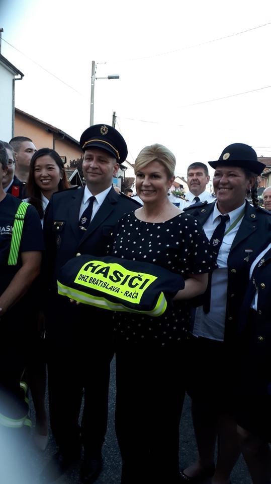 Na akcii pri príležitostí 75. výročia partnerského zboru v obci Hrašče sa príslušníci Dobrovoľného hasičského zboru Bratuislava - Rača totiž bola prítomná aj populárna chorvátska prezidentka Kolinda Grabarová Kitarovićová, ktorá im – rovnako ako všetkým ďalším účastníkom akcie – poďakovala za prácu a udržiavanie bezpečnosti v komunitách, v ktorých žijú.