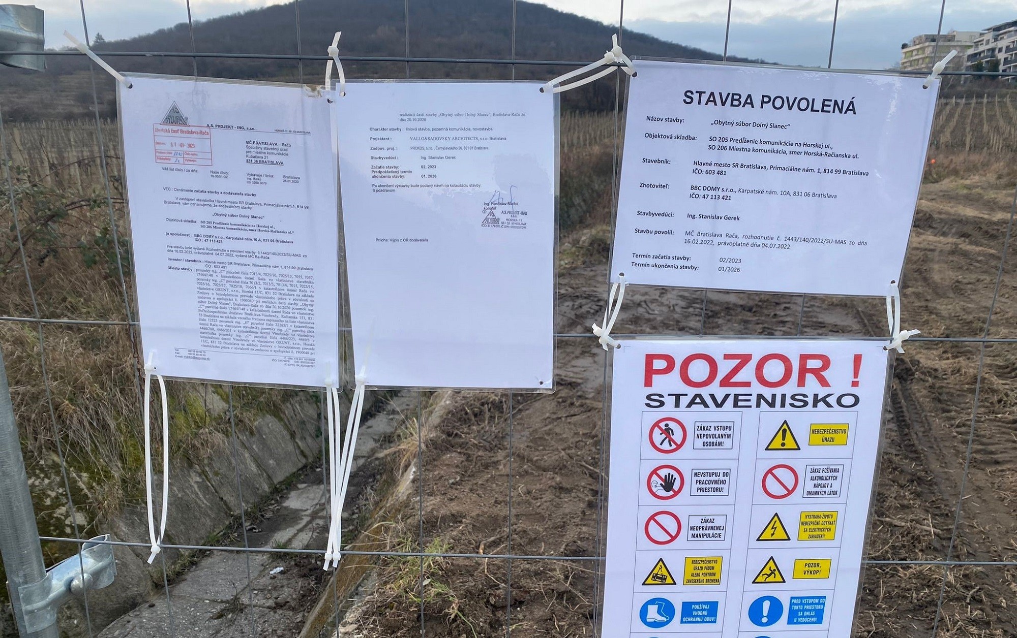V donedávna tichej lokalite bratislavskej Rače začína byť rušno, medzi vinohradmi sa pred pár dňami objavili bagre. Hlavné mesto už začalo s výstavbou cesty, ktorá povedie k plánovanému novému bytovému súboru Dolný Slanec, žiaľ, tesne popri detskom ihrisku. Nespokojní miestni chystajú na štvrtok stretnutie, aby sa dohodli, ako ďalej v tomto dlhoročnom spore.