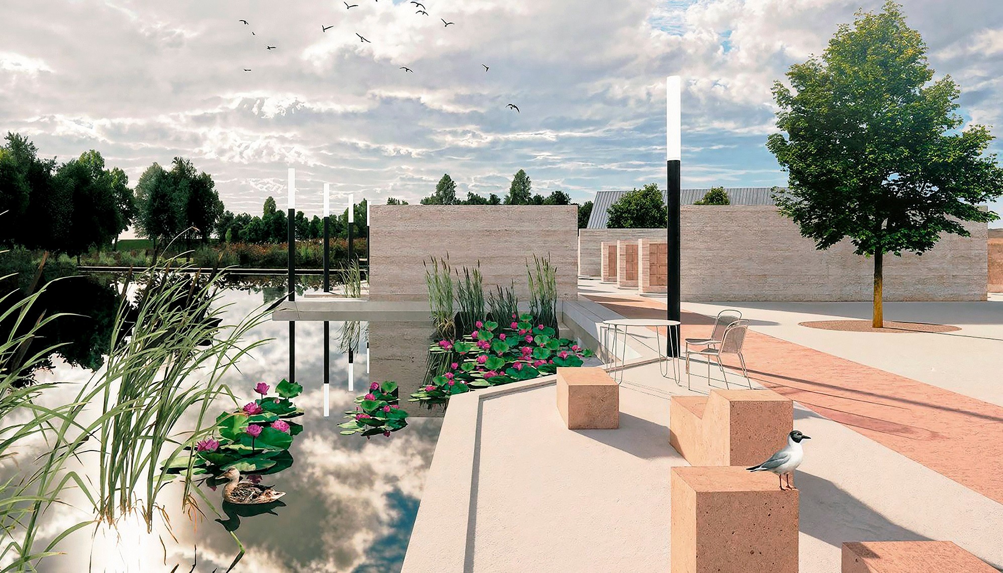Okrem hrobových polí je podľa návrhu súčasťou areálu aj vstupná časť s vybavenosťou a službami, ku ktorým patria dve obradné siene, kolumbárium, priestory pre údržbu aj reštaurácia s kaviarňou. Tie by mali slúžiť nielen na smútočné posedenia, ale aj bežnú rekreáciu obyvateľov s výhľadom do tretej časti areálu - parku s vodnými plochami, mokraďami, lužnými lesmi a lúkami. Približne v strede celého cintorína je situovaná vyhliadka v podobe mohylového násypu. Koncept cintorína Jarovce umožňuje flexibilne reagovať a v prípade poklesu záujmu o tradičné pochovávanie využiť územie pre ekologické formy pohrebníctva bez nutnosti ďalších terénnych úprav.