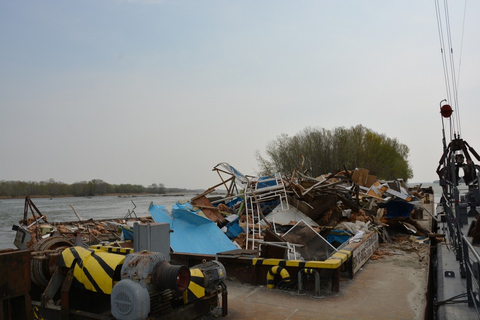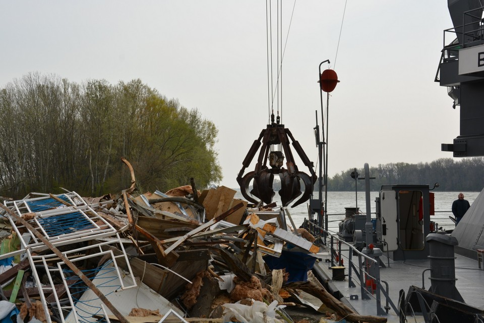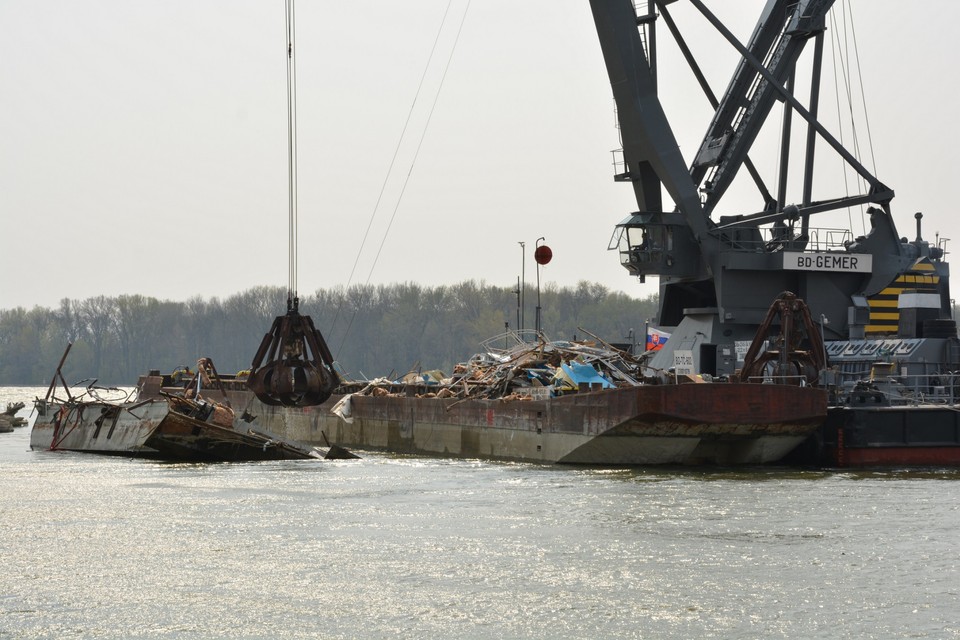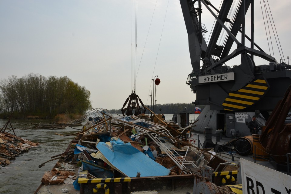 "Máme tu tlačný čln, do ktorého sa to nakladá, remorkér a plávajúci žeriav Gemer, ktorý trosky premiestňuje do člna," vysvetlil Dúcz. Následne trosky po vode prepravia do prístavu vo Vlčom hrdle, kde ich vyložia na breh. Tu už sa o ne musí postarať majiteľ reštaurácie. Hotoví by mali byť do konca týždňa. Ak však bude fúkať silný vietor, práce budú musieť prerušiť.