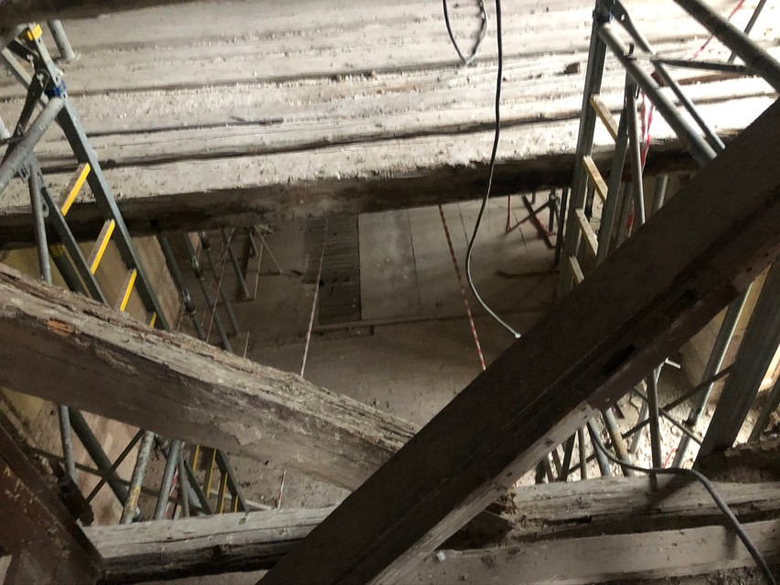 Podlahy boli úplne vyčistené od vtáčieho trusu, v tejto časti však zostali špinavé, pretože kvôli zlej statike podlahy sa čistiť nedalo