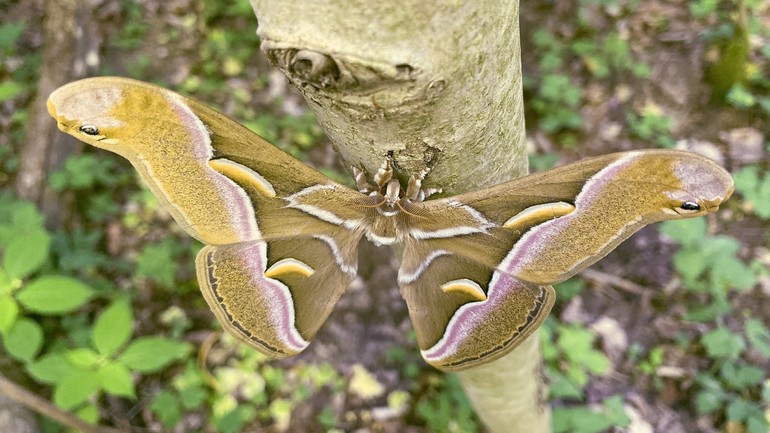 "Počas terénnych prác v okolí Rusoviec objavili študenti pôsobivého okáňa pajaseňového (Samia cynthia). Tento exotický druh bol na území Slovenska pozorovaný prvýkrát v roku 2020," pochválila sa na sociálnej sieti Katedra zoológie PriF UK v Bratislave.