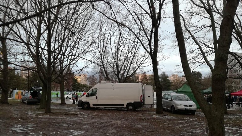 FOTO: Na ružinovskej zabíjačke zničili autá predajcov trávnik v parku