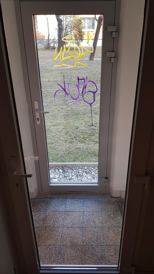 "O 10.00 hod. som zbierala pod balkónom neporiadok, ktorý sem nafúkal vietor. O hodinu som išla von a dvere už boli počmárané. Čiže neštítia sa ani za bieleho dňa ničiť," dodala.