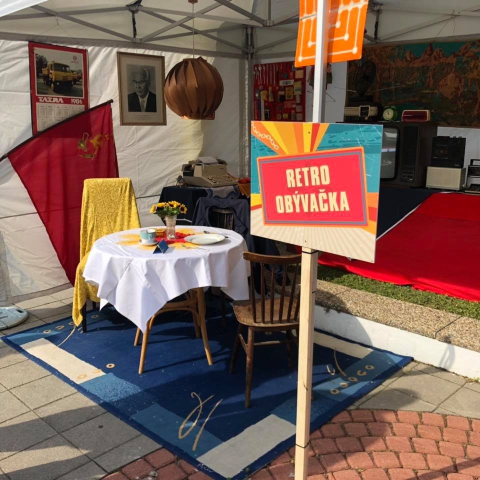 Nechýbali ani predajné pulty s rôznym retro tovarom, ktorý zdá sa ide opäť do módy...