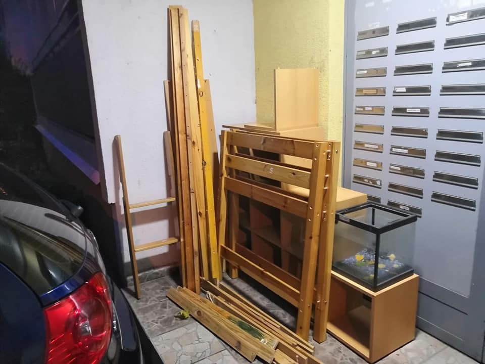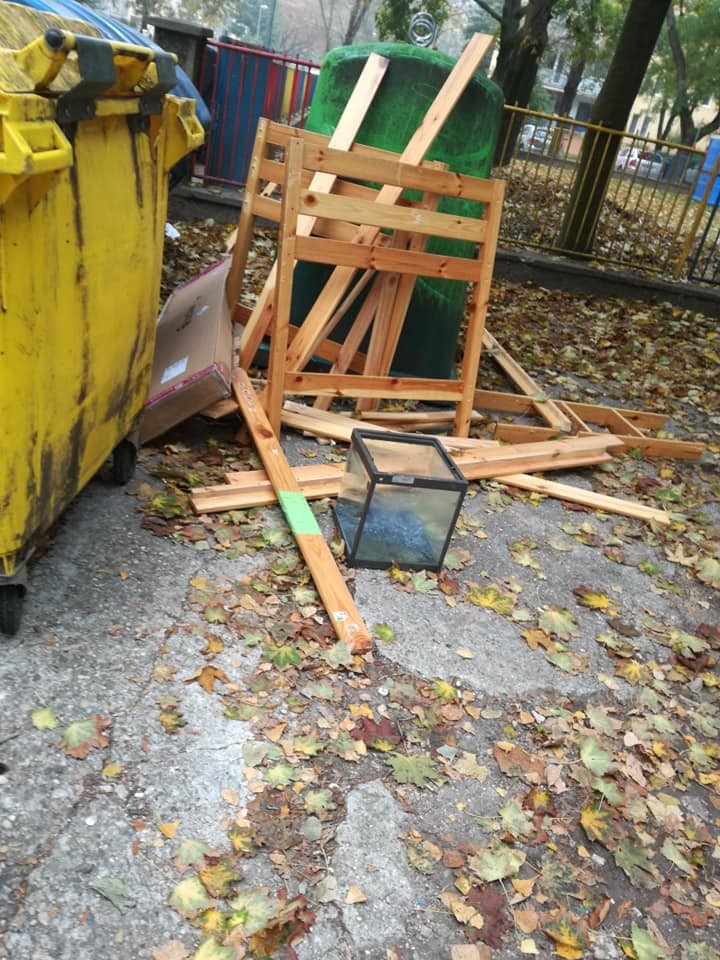 Niektorý z obyvateľov bytov na Kozmonautickej 5 na Ostredkoch sa pred pár dňami chcel zbaviť starého nábytku - dreveného rámu postele a poličiek, ktoré pohádzal ku kontajnerovému stojisku. Keď to tam zbadal jeden z poriadkumilovných susedov, tak si dal tú námahu a všetok odpad naukladal k vchodu aj s patričným odkazom nalepeným na dverách. Ako to napokon dopadlo?