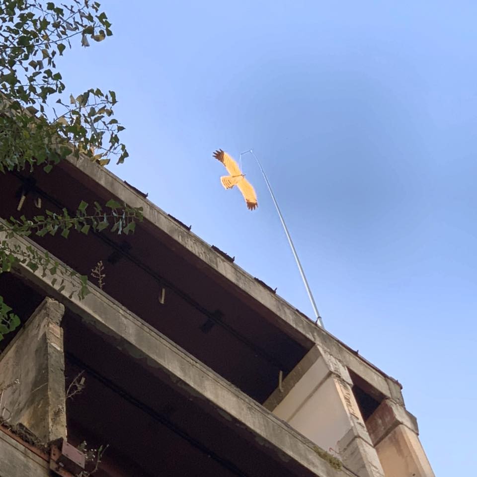 Obyvatelia z okolia skeletu obchodného domu v bratislavskom Ružinove, ľudovo nazývaného "Hirošima", sa už dlhšie sťažujú na premnožené holuby, ktoré znečisťujú okolie stavby. Nový majiteľov skeletu spolu s mestskou časťou sa situáciu rozhodli skúsiť vyriešiť osadením plašičov, ktoré sa využívajú napríklad v rakúskych vinohradoch na ochranu úrody či niektorých mestách západnej Európy.