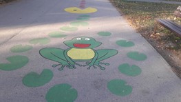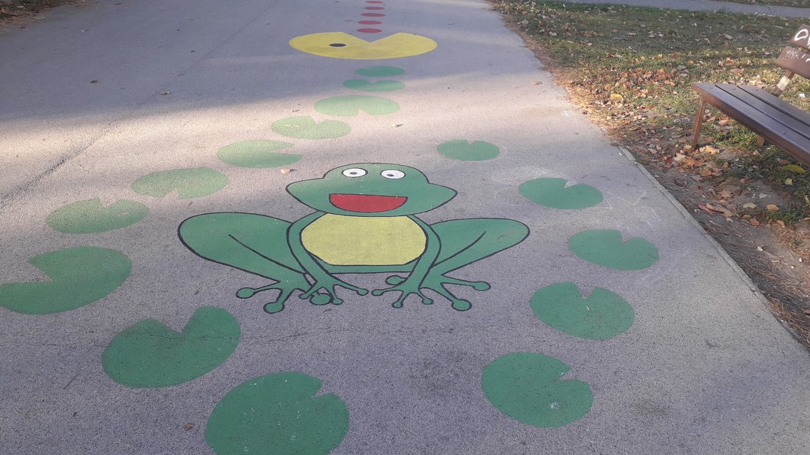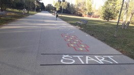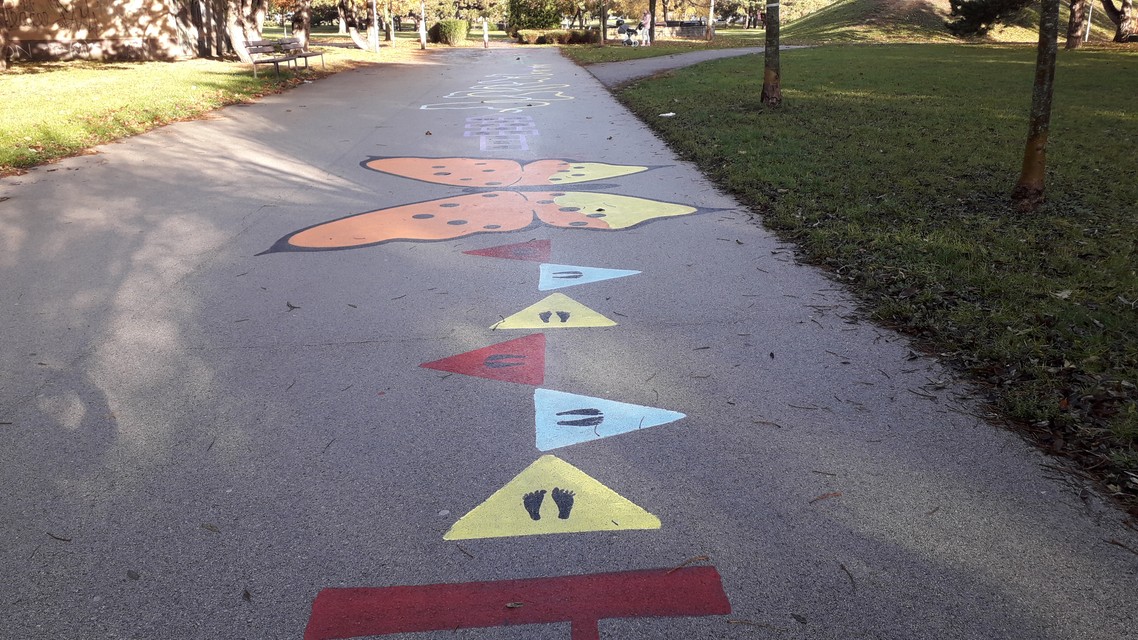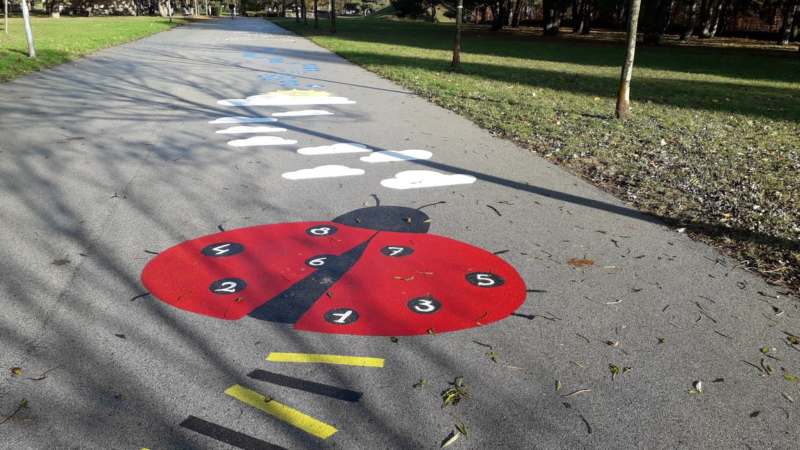 Pomaľovaný chodník, ktorý nájdete v ružinovskom Parku Ostredky, nebol ešte ani dokončený a už prilákal deti zo sídliska. Skákali na ňom „škôlku“, na lienke počítali bodky... a šikovní výtvarníci medzitým maľovali na chodník ďalšie zábavné motívy. Tešia sa mu nielen mamičky s deťmi, študenti z okolitých škôl, ale aj seniori.