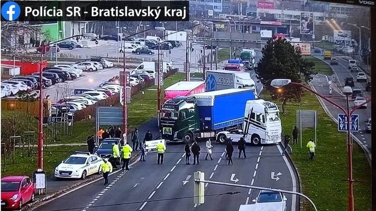 Protestujúcich vodičov kamiónov bolo dnes ráno na Rožňavskej ulici v Bratislave očividne menej ako včera. Vyzerá to však tak, že siahli po radikálnom kroku. Čoskoro sa však všetko vrátilo do "pôvodného", teda včerajšieho stavu.
