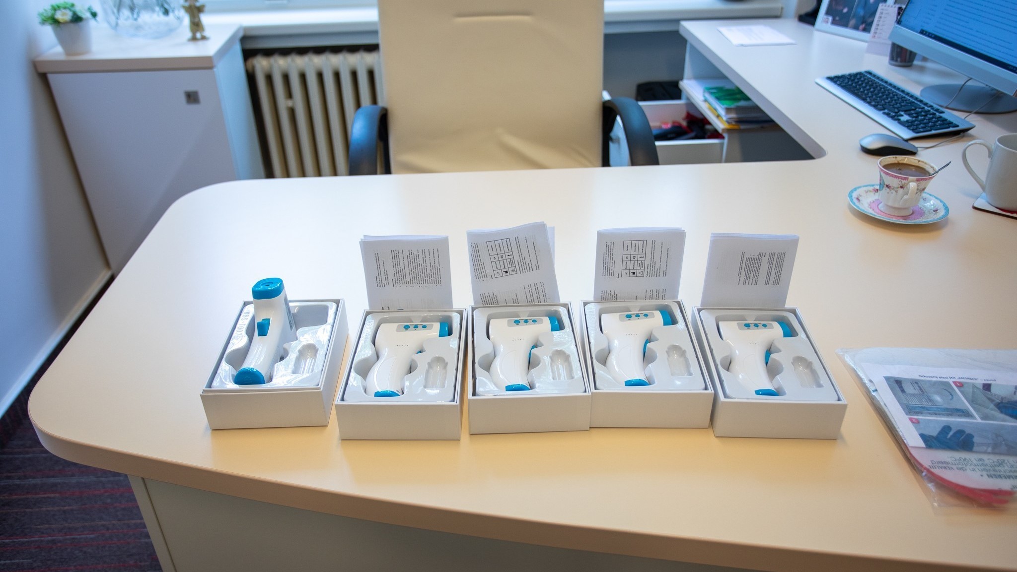 Bezdotykové teplomery sú už nachystané. Triedne učiteľky odmerajú teplotu všetkým žiakom ešte pred vstupom do budovy školy. Kto ju bude mať zvýšenú, musí domov. Pri tomto vstupnom „filtri“ pomôže aj termokamera, ktorú škole zapožičala súkromná firma na celý mesiac.