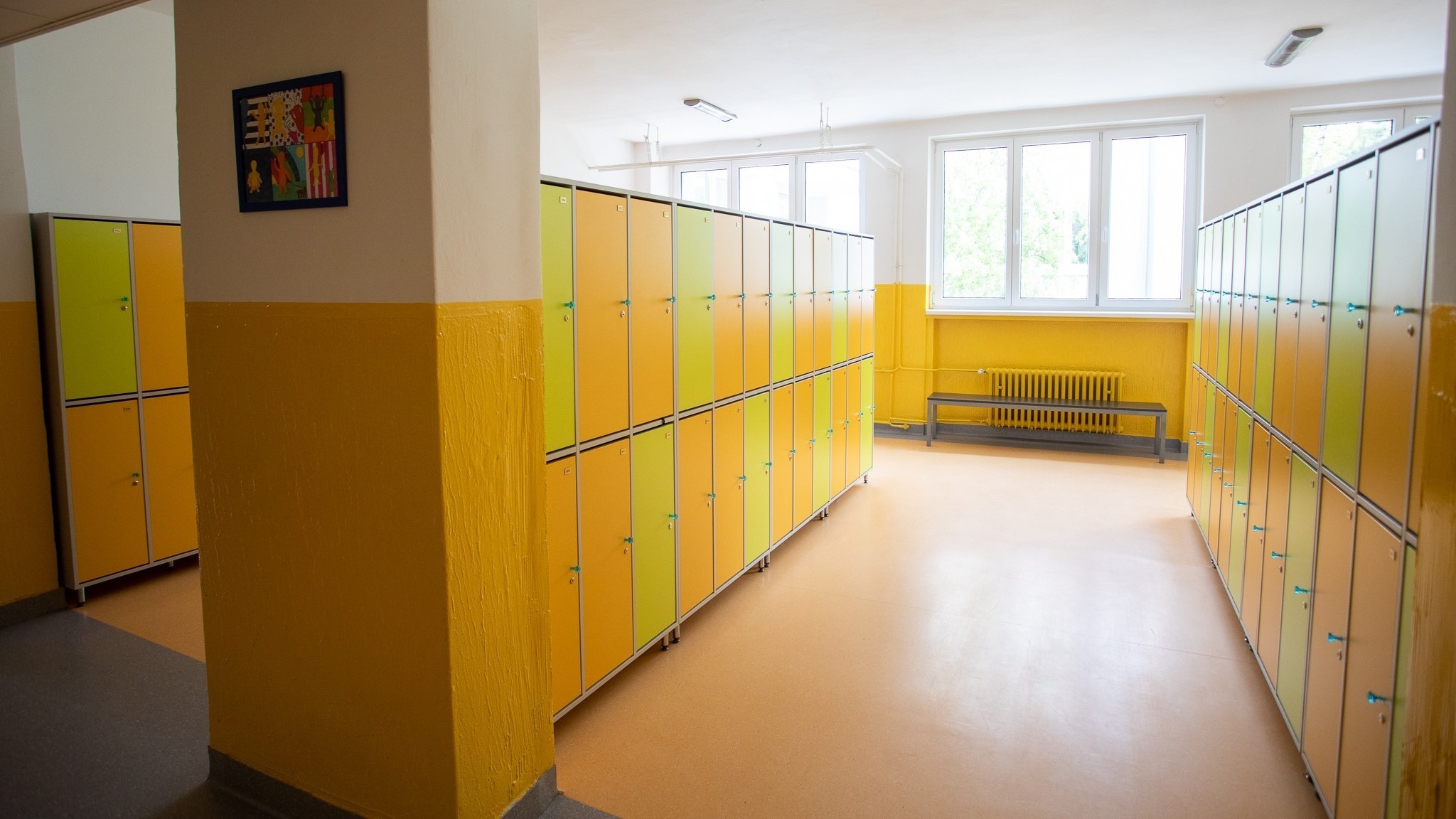 Pripravené sú i šatne pre žiakov. Všetko je čisté, vyumývané, vydezinfikované. Odtiaľto pôjdu do svojej triedy, učitelia sa však budú snažiť organizovať pre nich čo najviac aktivít vonku na čerstvom vzduchu. Ešte treba vydezinfikovať školské ihrisko, v čom by mala pomôcť mestská časť.