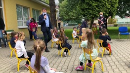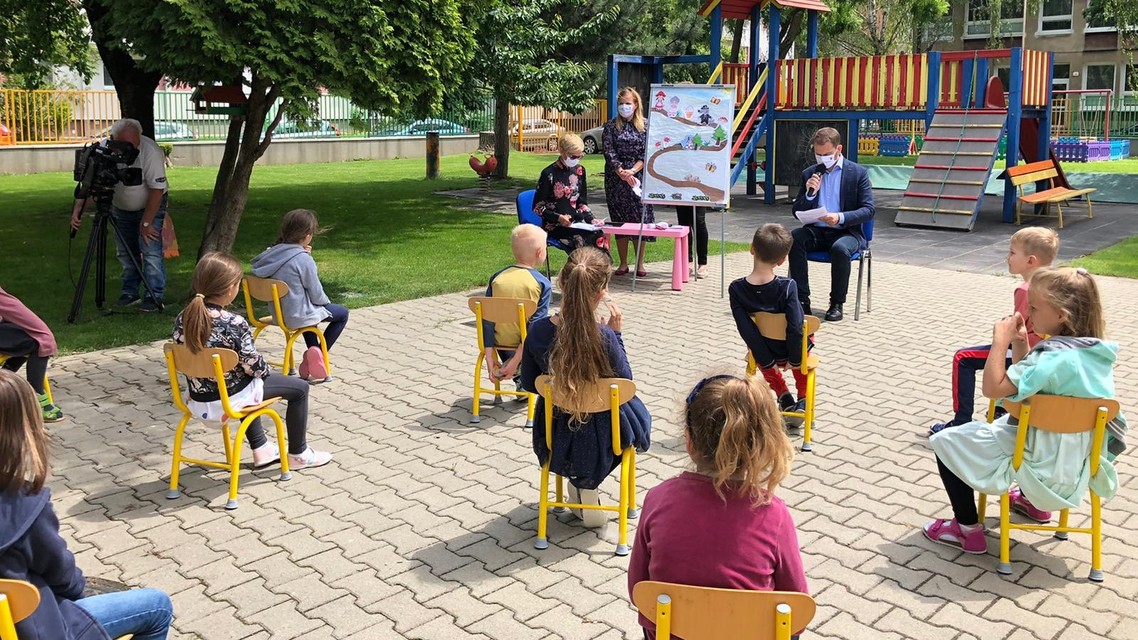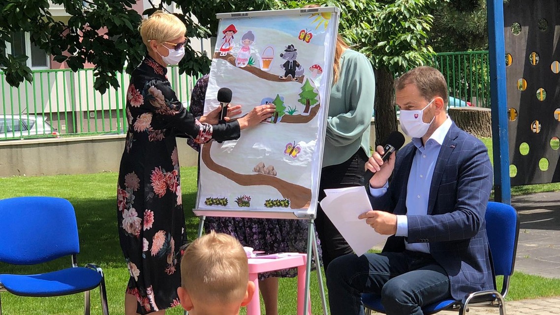 Neskôr sa premiér presunul do neďalekej Materskej školy Haburská za menšími deťmi, kde sa im rozhodol na ich veľký deň prečítať populárnu rozprávku o Červenej čiapočke. Pri čítaní mu asistovala aj Mária Šofranko, rozprávku graficky znázorňovala. Mária Šofranko má s deťmi bohaté skúsenosti, keďže kedysi pôsobila ako učiteľka. Deti sedeli v hľadisku v povinných rozostupoch a pozorne premiéra "uja Igora" počúvali a keď sa v čítaní pomýlil, opravili ho. Ten, aby im priblížil dej, poslankyňu okolo detí ponaháňal.