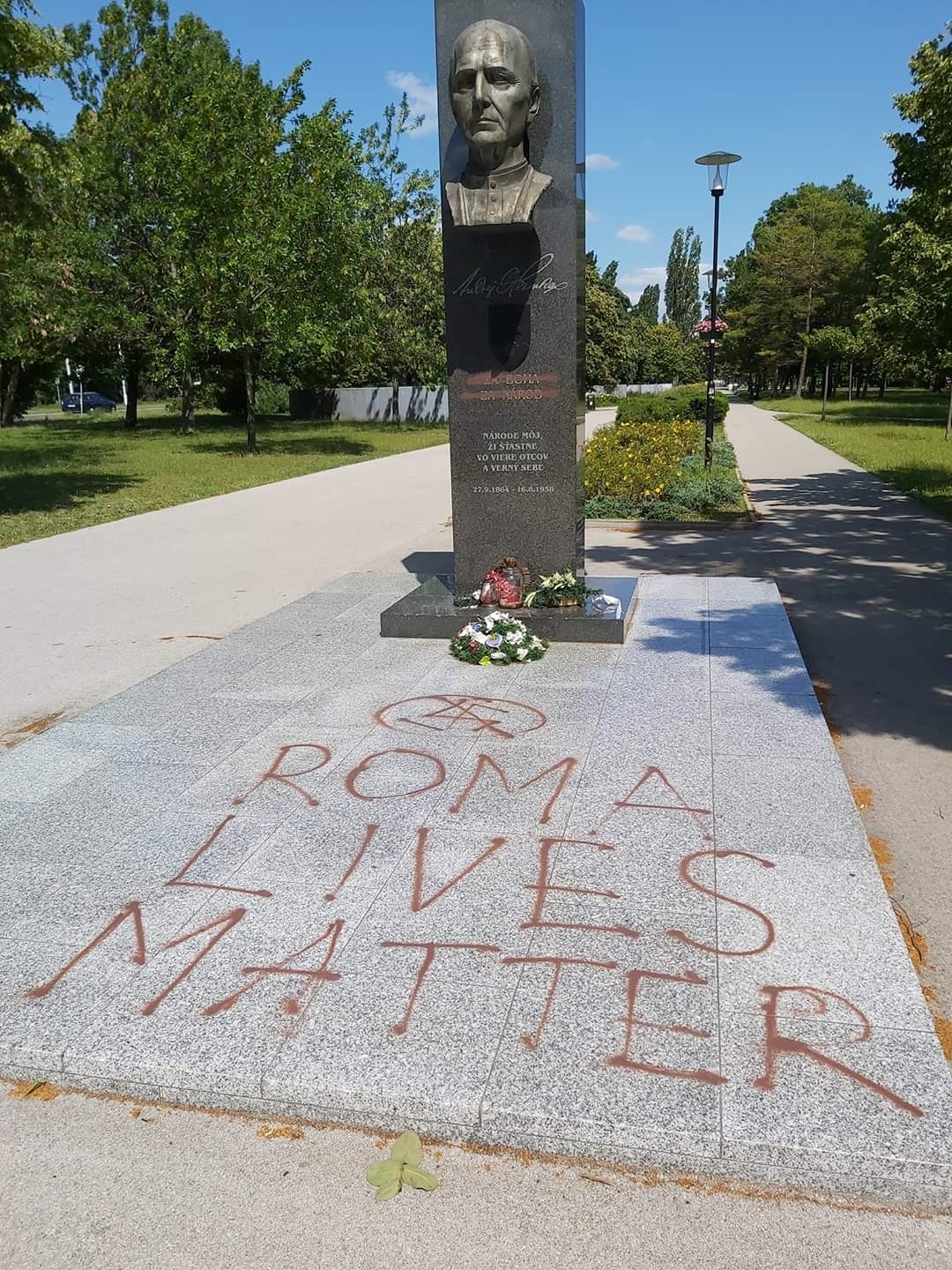 Na pamätníku Andreja Hlinku sa objavil podobný nápis, akurát slovo Black nahradilo slovo Roma. Kto a s akým cieľom tento čin urobil, si môžeme iba domýšľať, no určite to neprispeje k upokojeniu spoločenskej atmosféry, práve naopak, čo zväčša vyhovuje extrémistom na pravej i ľavej strane politického spektra. Tí sa zrejme neštítili zneužiť na dosiahnutie provokácie použitie slova "Roma", hoci Rómovia s týmto činom s najväčšou pravdepodobnosťou nemajú nič spoločné, keďže ani v ich záujme rozhodne nie je, aby na Slovensku dochádzalo k etnickému napätiu.