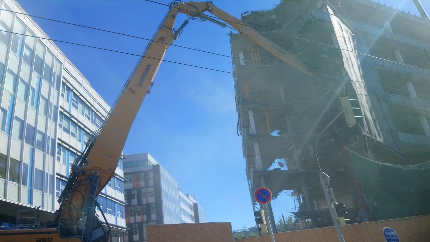 Budovy rozoberajú bagre s ramenom dlhým 33 metrov.
