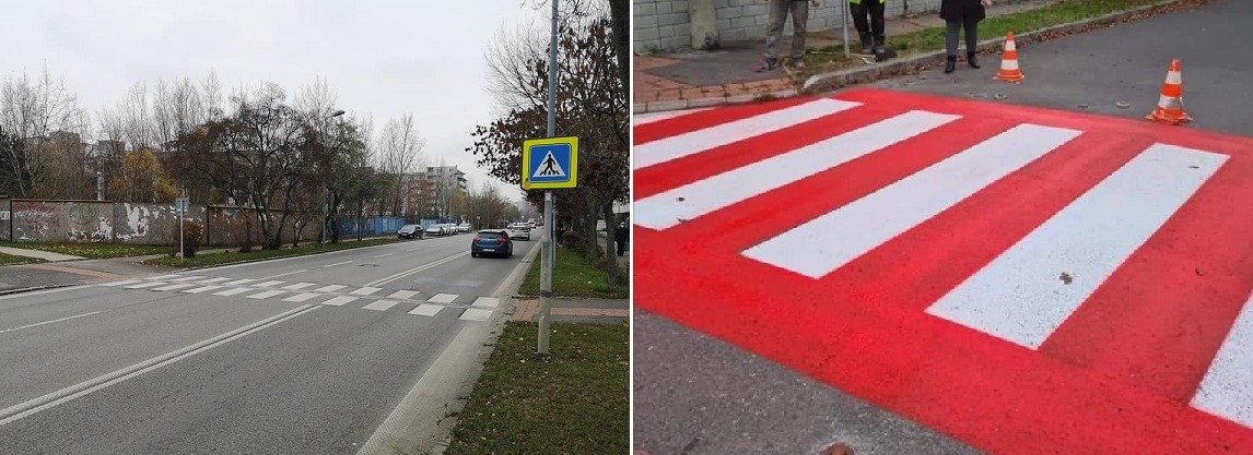 Premaľovanie priechodov výraznou červenou farbou takisto môže prispieť k väčšej bezpečnosti chodcov...