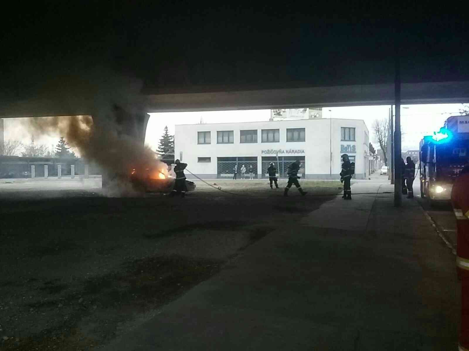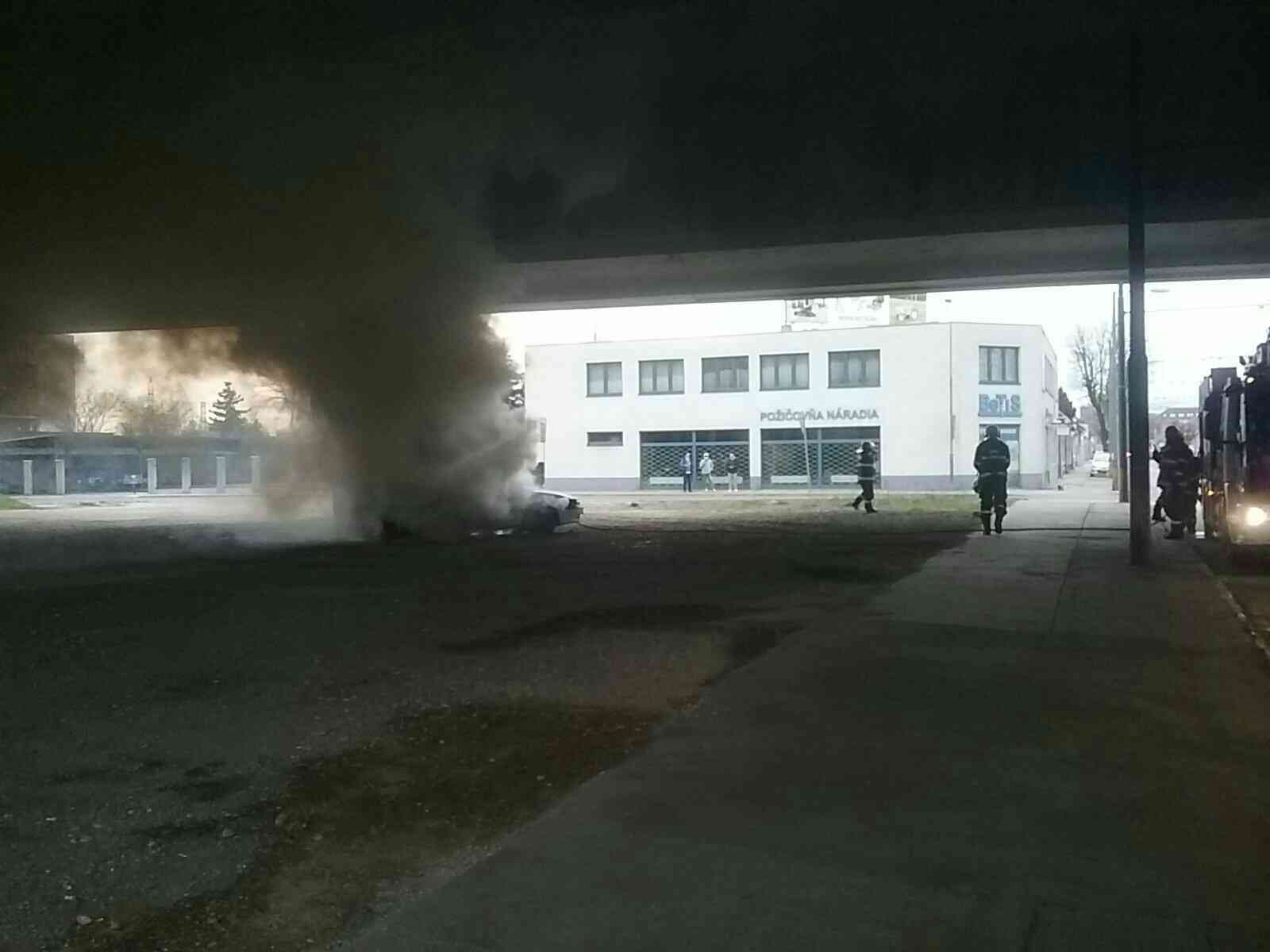 FOTO: Pod diaľničným obchvatom na Mierovej ulici horelo v nedeľu večer osobné auto