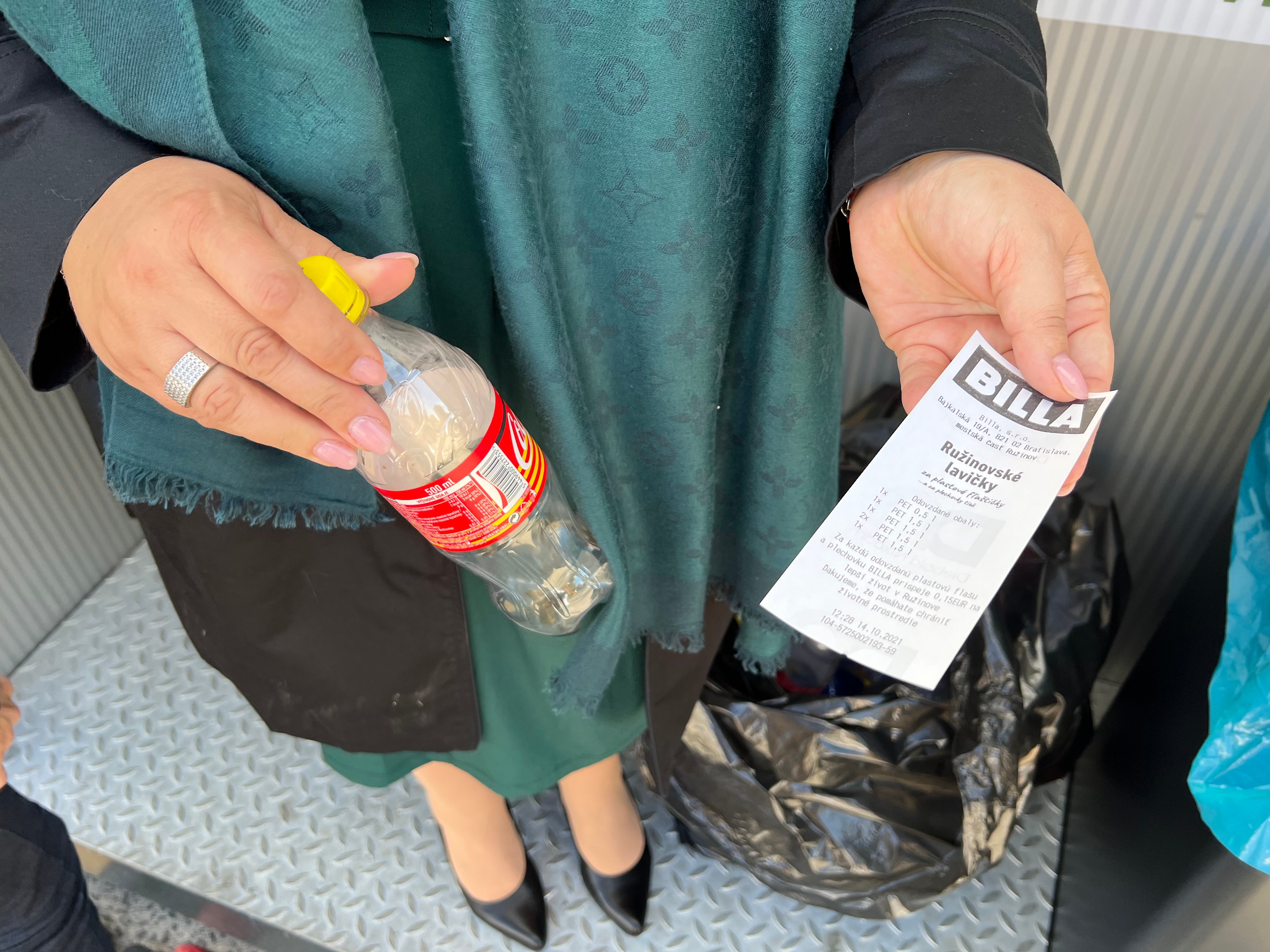 Po vhodení fliaš si zákazník môže vytlačiť etiketu.