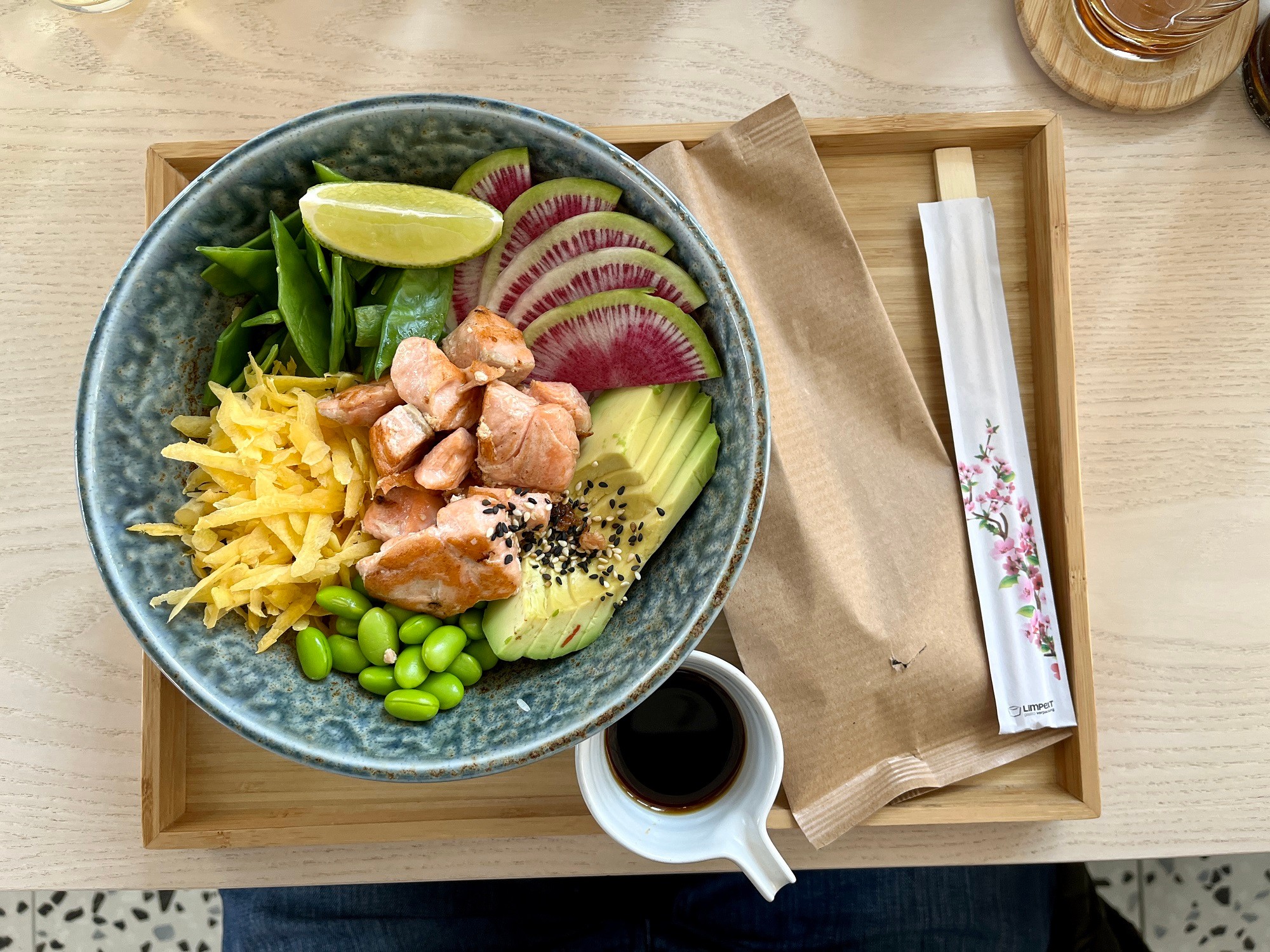Aj Lososový poké bowl (14,90 €) pôsobil ako malé umelecké dielo. Tradičné havajské jedlo bolo kombináciou chutnej ryby a ryže, mladých sójových bôbov edamame, avokáda, žltej mrkvy, navyše dekorované plátkami melónovej reďkovky... Naozaj pastva pre oči, a nielen pre ne. Všetky ingrediencie spolu ladili, skrátka, poké ako má byť, miska úžasne vystavaná, svieža, ľahká, a pritom výživná.