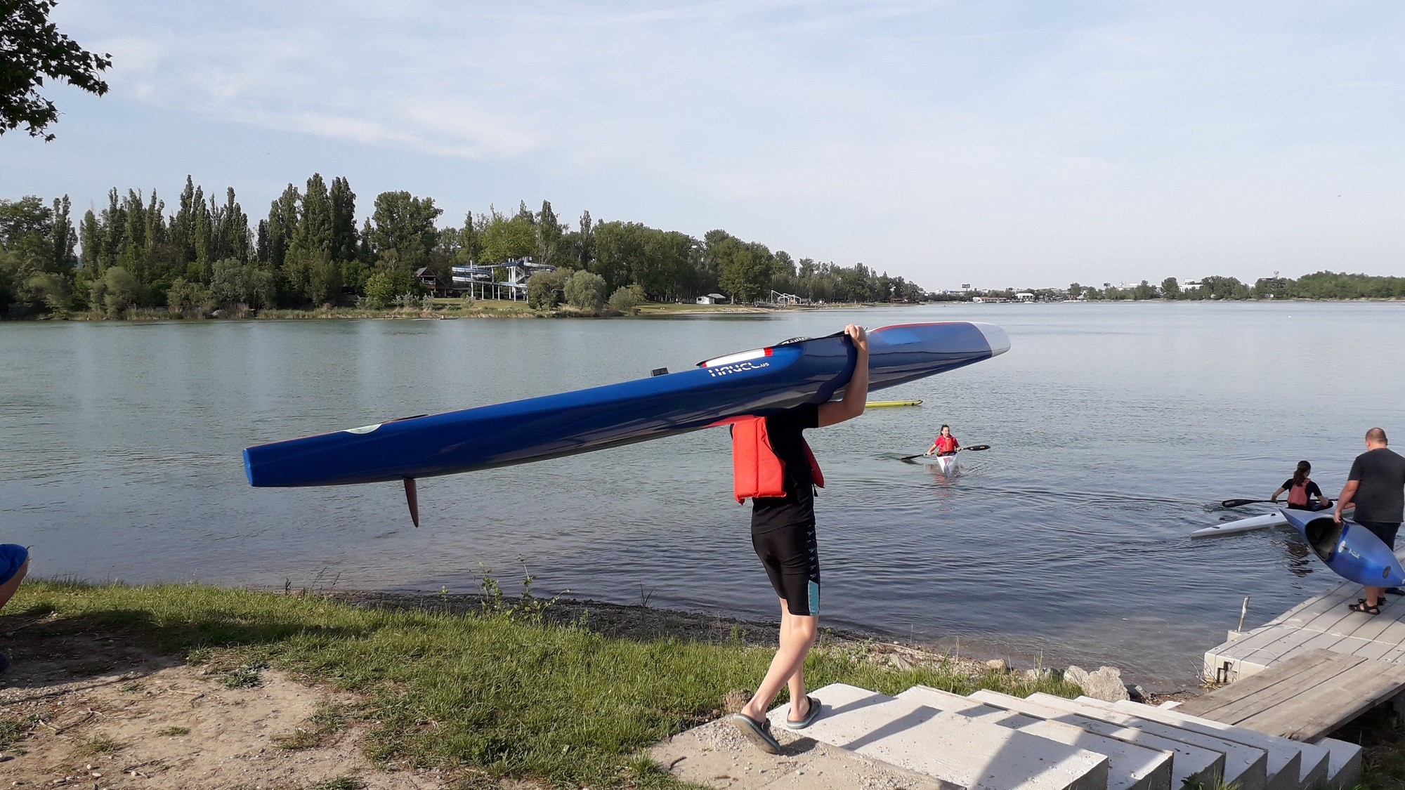 Sledujeme chlapca vo veste, ako si nesie k vode loďku dlhú 4,5 metra, vážiacu 8 kg. Nemá s tým problém. Staršie deti nad 12 rokov už dostanú väčšie, päťmetrové kajaky, aj ich hmotnosť je vyššia, až 12 kg. A každé jedno si ten svoj musí po tréningu utrieť od vody a odložiť, kam treba, inak hrozia ďalšie cviky.